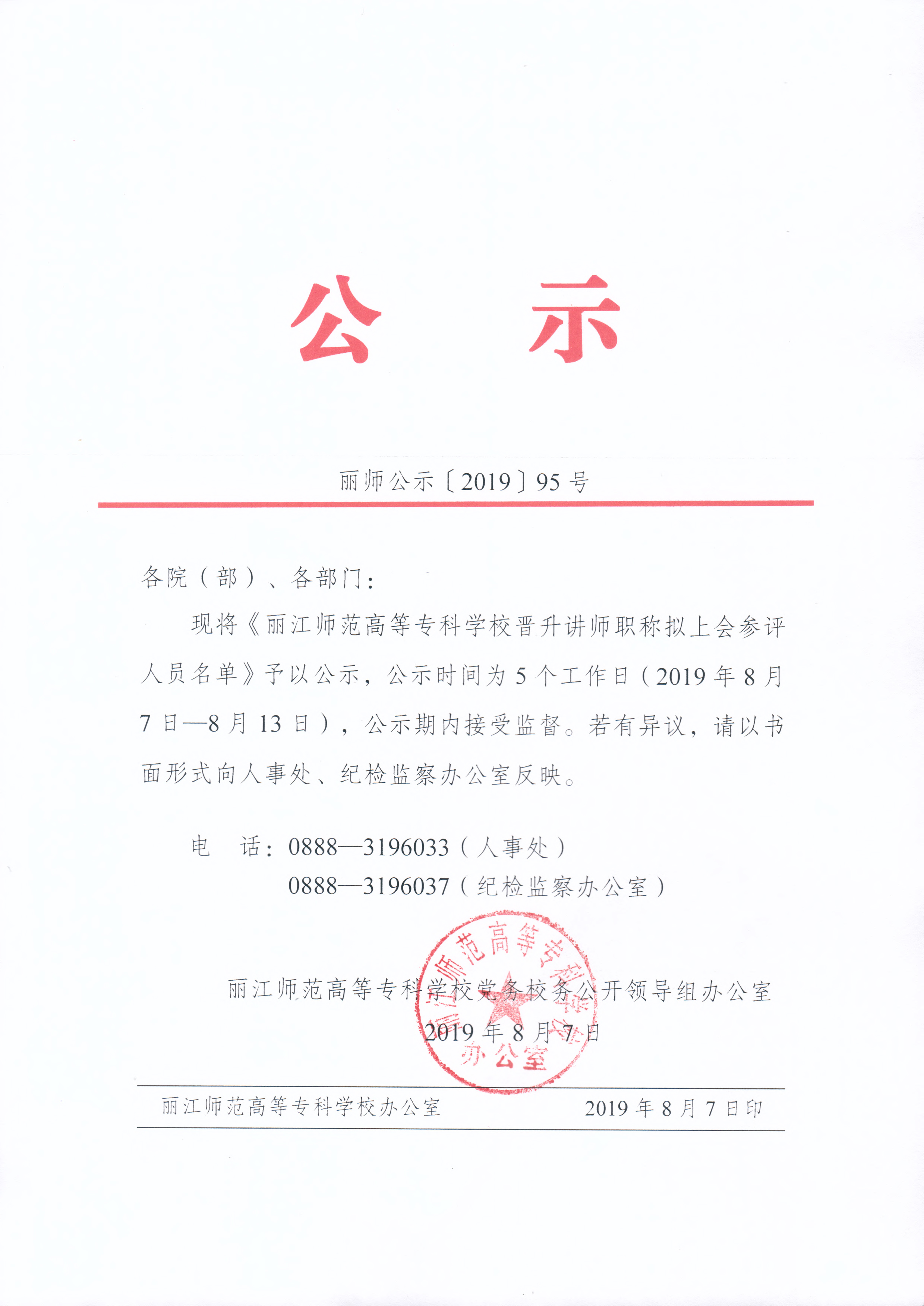 丽江师范高等专科学校晋升讲师职称拟上会参评人员名单