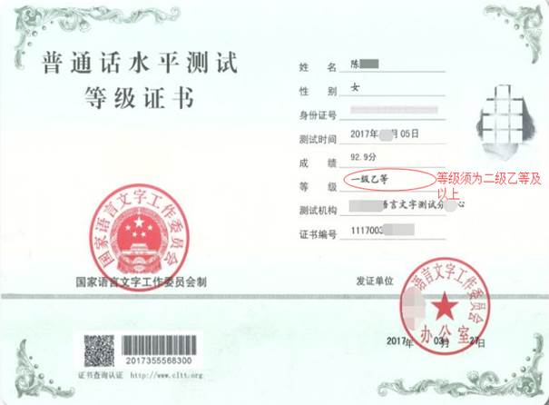 若无法验证申请人普通话水平测试等级的,需现场提交《普通话水平测试等级证书》原件。