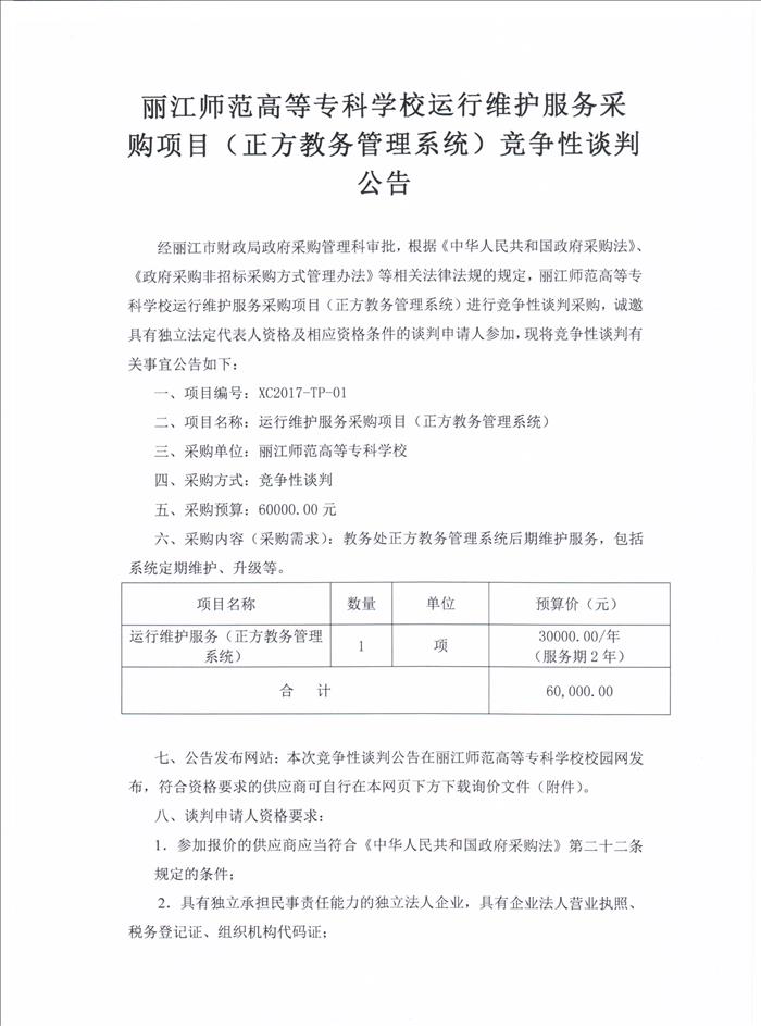 附件:运行维护服务采购项目(正方教务管理系统)谈判文件.doc