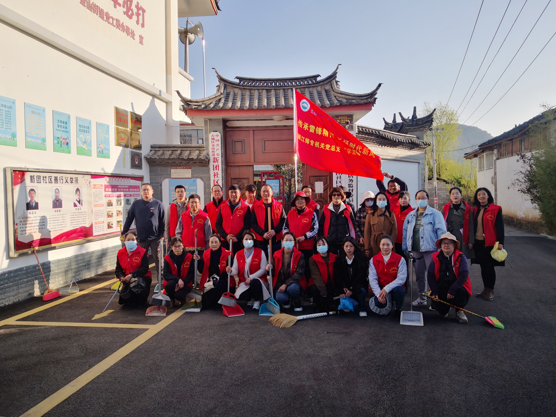 机关党总支全体干部职工认真贯彻落实习近平总书记对深入开展学雷锋活动作出的重要指示精神。3月6日上午,按照教育部印发的《教育系统关于新时代学习弘扬雷锋精神 深入开展学雷锋活动的实施方案》要求,结合工作实际,机关党总支组织40名党员先锋队,深入新团社区开展学雷锋志愿服务活动,到新团社区清扫街道。