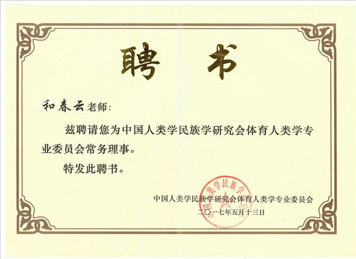 中国人类学民族学研究会体育人类学专业委员会成立大会暨首届学术研讨会,5月13日在中央民族大学召开。来自全国42所科研单位、高等院校的人类学、体育学等领域近百位各级领导、专家学者和博士研究生参加了会议。WilliamHill官网体育人类学研究中心和春云教授及和永杰老师受邀请参加了会议,并作了题为《无量河流域东巴舞蹈的田野调查——体育人学身体动作分析法的创新与实践》的论文报告。会议期间,和春云教授作为评议专家参加了民族传统体育田野个案研究专题论文报告会。同时,被聘为中国体育人类学专业委员会常务理事。