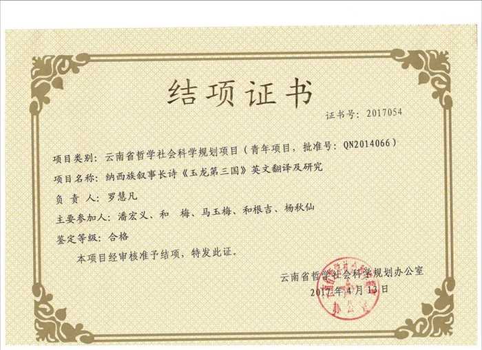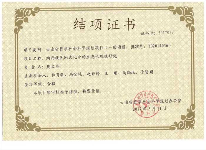 近日,WilliamHill官网共4项云南省哲学社会科学规划项目顺利通过结项验收,分别是:2014年度和燕杰副教授主持的《空间集聚视角下的滇西区域经济一体化研究》(青年项目,批准号:QN2014016),鉴定等级:良好;罗慧凡老师主持的《纳西族叙事长诗《玉龙第三国》英文翻译及研究》(青年项目,批准号QN2014066),鉴定等级:合格;周文英教授主持的《纳西族民间文化中的生态伦理观》(一般项目,批准号YB2014056),鉴定等级:合格; 2015年度何木叶老师主持的《文化视角下纳西族老人主观幸福感和养老服务研究》(青年项目,批准号QN2015027),鉴定等级:良好。