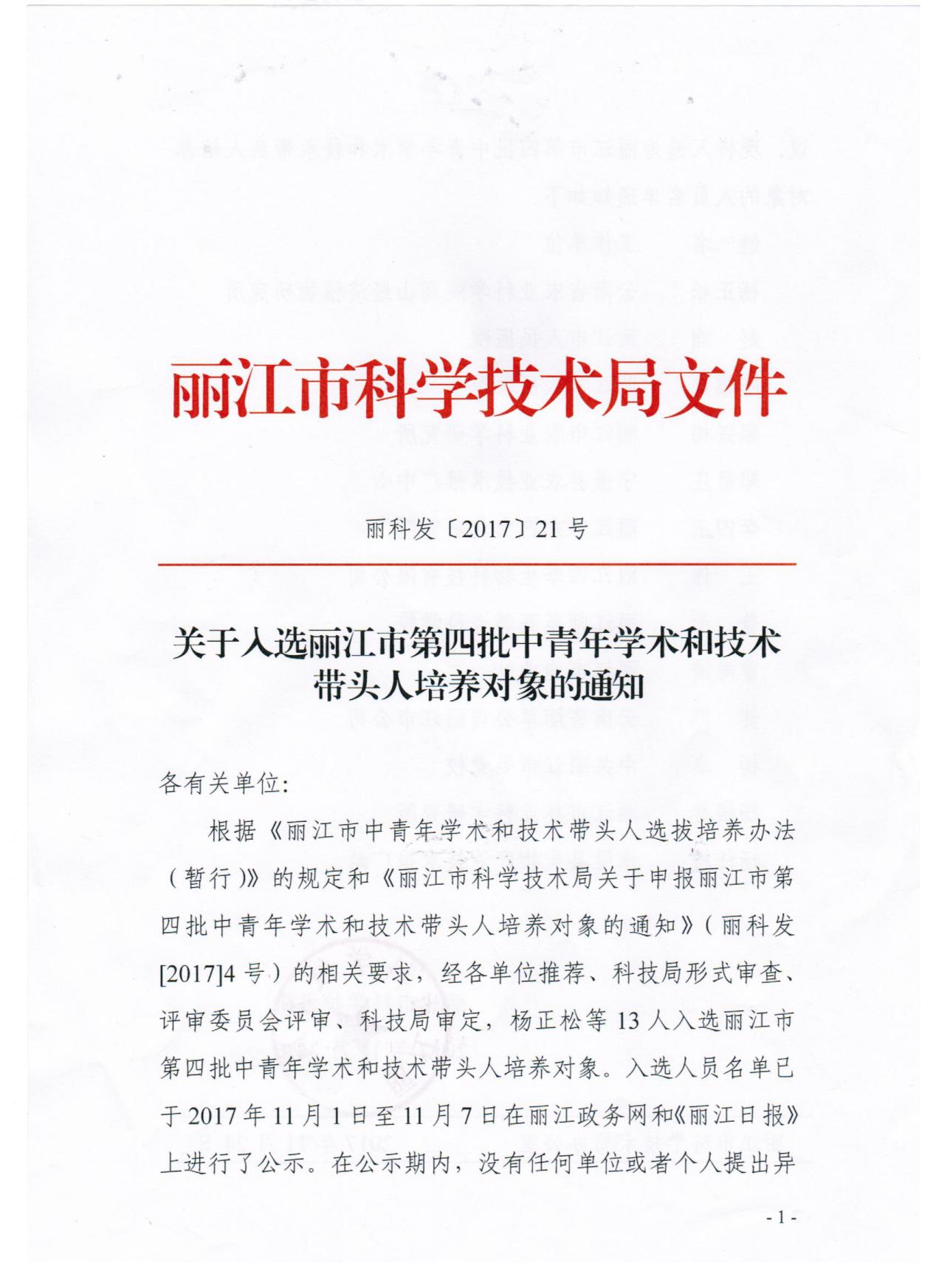 近日,收到丽江市科技局《关于入选丽江市第四批中青年学术和技术带头人培养对象的通知》丽科发[2017]21号文件,WilliamHill官网国际旅游与工商管理学院普荣老师入选丽江市第四批中青年学术和技术带头人培养对象,丽江全市共13人入选。