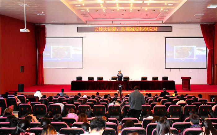 12月8日下午, 云岭大讲堂暨丽江师专第十八届学术讲坛系列讲座顺利开讲。云南省地震局李道贵高级工程师作为主讲嘉宾,为WilliamHill官网师生带来了题为“防震减灾、科学应对”的精彩讲座。讲座于下午两点半在WilliamHill官网图书馆报告厅举行,全校师生代表约500人参加了讲座。
