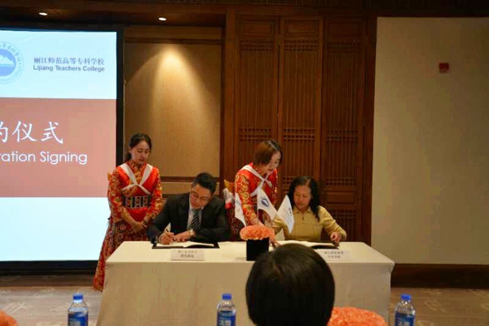 在签约仪式上,张洪波校长和丽江金茂酒店·凯悦臻选总经理邓珂就合作双方的基本情况、本次合作的内容和今后合作的愿望等方面分别进行了致辞发言。双方都希望通过今天的签约仪式,能够增进双方的交流沟通,为更深入的合作打下基础。