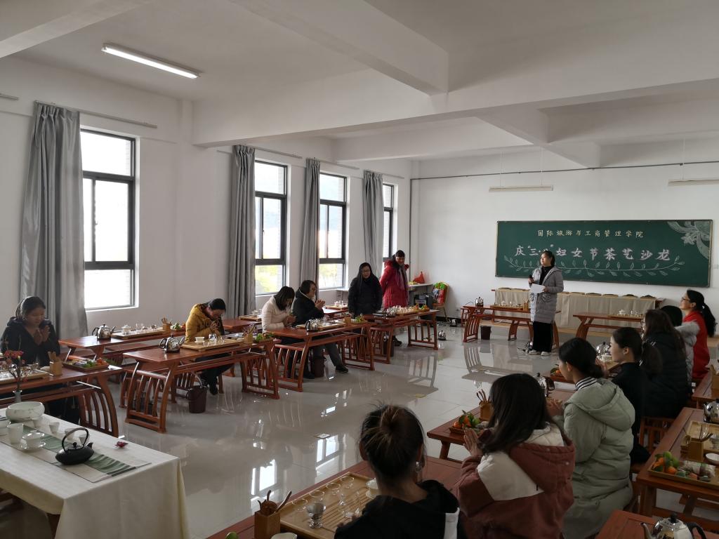 在春暖花开的三月里,在老师们日夜忙碌与辛劳中,国际旅游与工商管理学院的女教师们也迎来了一年一度国际“三八”妇女节。学院工会组织开展了茶艺沙龙活动,在这个属于世界妇女的节日里,全院的女教职工们欢聚一堂,共度佳节。