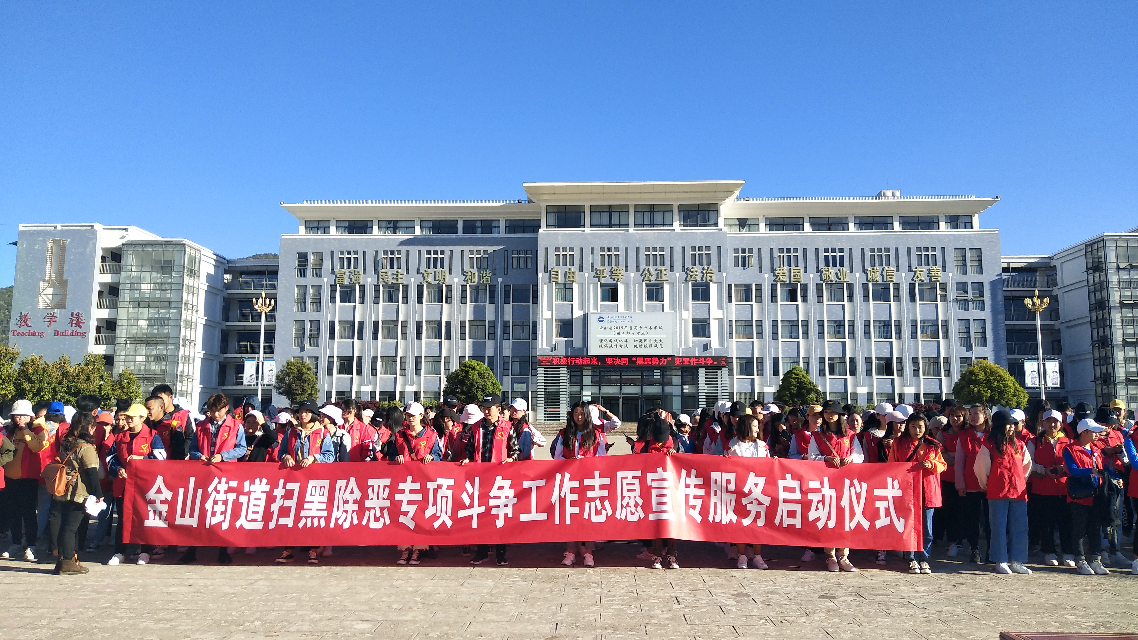 4月13日早上8点30分,金山街道扫黑除恶专项斗争工作志愿宣传服务启动仪式在WilliamHill官网南广场举行。参与此次扫黑除恶宣传的人员分别是WilliamHill官网部分老师和各个学院的青年志愿者。