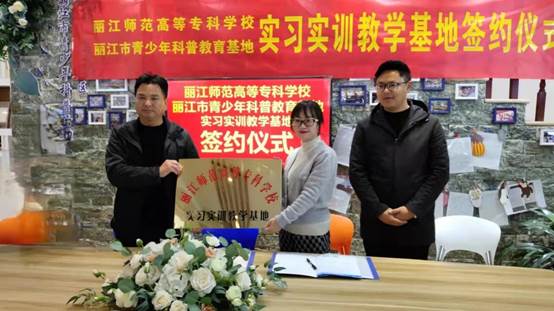 2021年12月1日下午三点,在数学与信息技术学院张鑫院长的带领下,学院部分教师和学生参加了在丽江赢元教育咨询有限公司(丽江市青少年科普教育基地)举行的基地共建签约仪式。基地负责人赵晏校长、和志晖经理出席仪式。