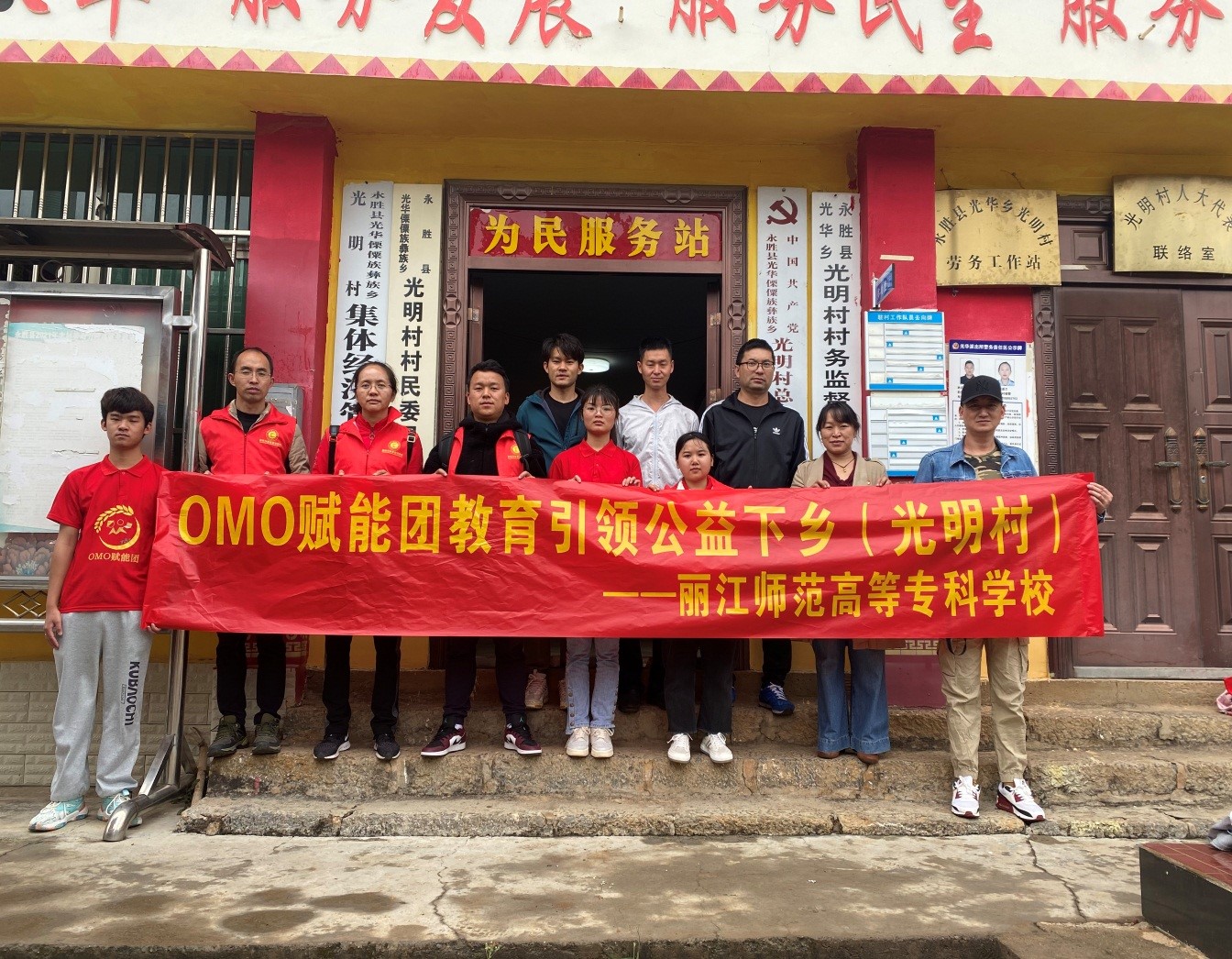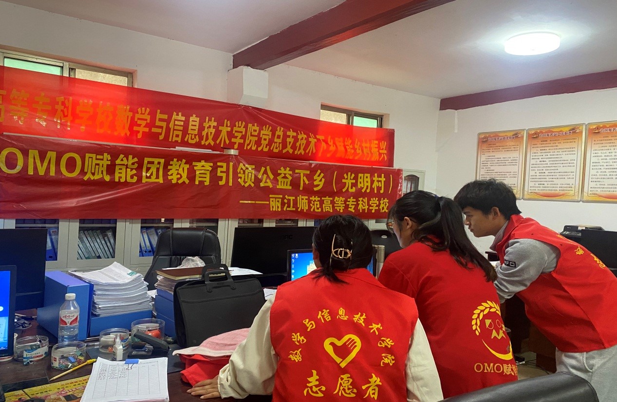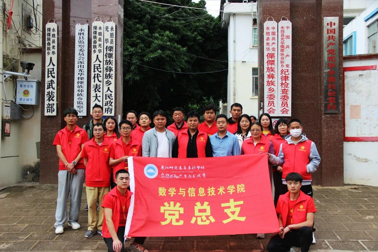 为深入贯彻落实《丽江师范高等专科学校2022年乡村振兴工作计划》,结合数学与信息技术学院专业特点。数学与信息技术学院党总支积极响应学校号召,2022年5月17日在学院党总支书记李学花、院长张鑫的带领下到永胜县光华乡开展信息技术服务助力乡村振兴活动。参加本次活动的有:数学与信息技术学院党总支支委、团总支部成员、计算机类专业部分学生、海联电脑公司技术人员及“OMO(Online-Merge-Offline)赋能团”成员。OMO赋能团是数信学院学生组建的创新创业团队,致力于用科技为乡村振兴服务。