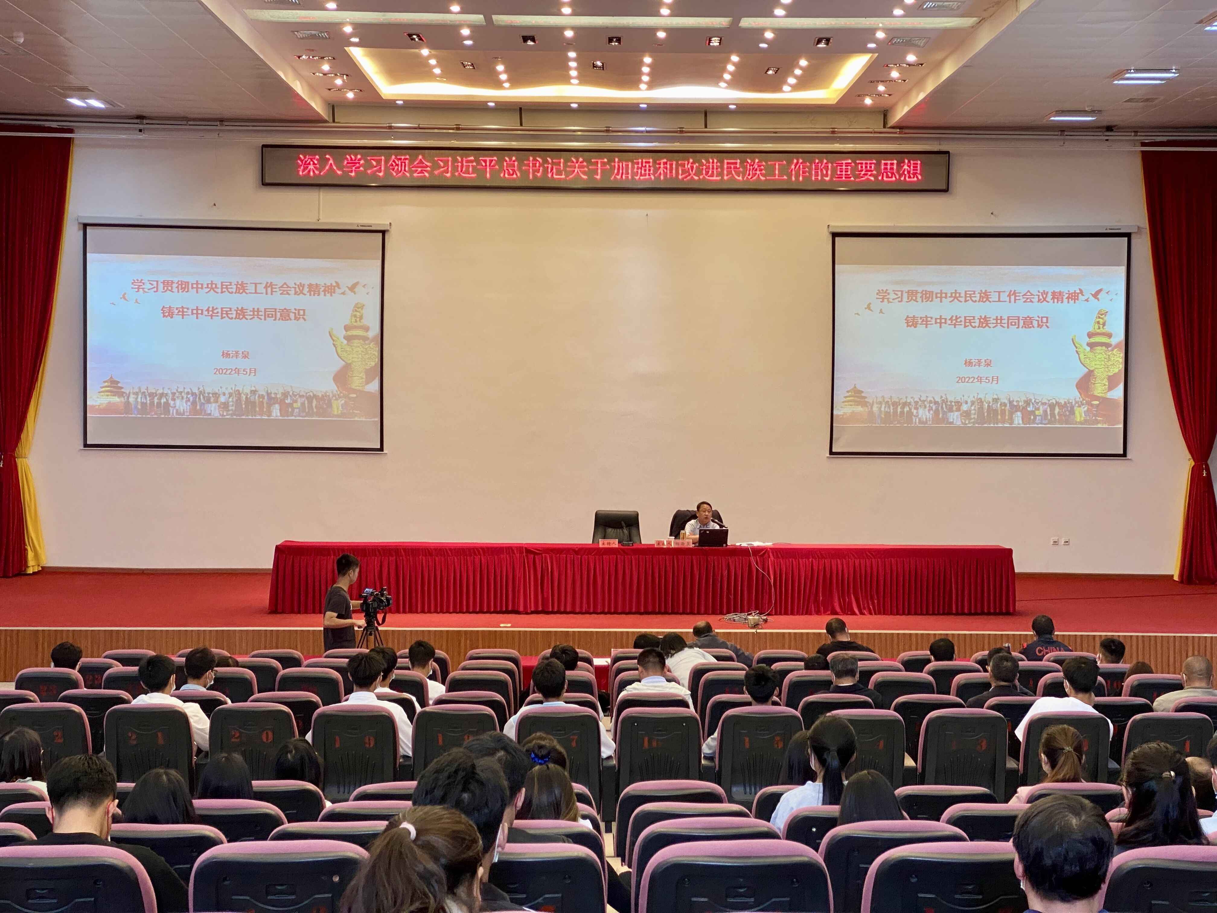 为学习贯彻中央民族工作会议精神,引导学校师生铸牢中华民族共同体意识,5月20日下午,学校邀请云南民族大学党委委员、统战部部长、硕士生导师杨泽泉到校开展专题讲座。讲座在图书馆报告厅举行,各党总支统战委员,机关党总支各部门负责人、各党支部书记,科技处、民族文化研究中心全体工作人员和各学院师生代表参加。讲座由学校党委副书记彭鸿昌主持。
