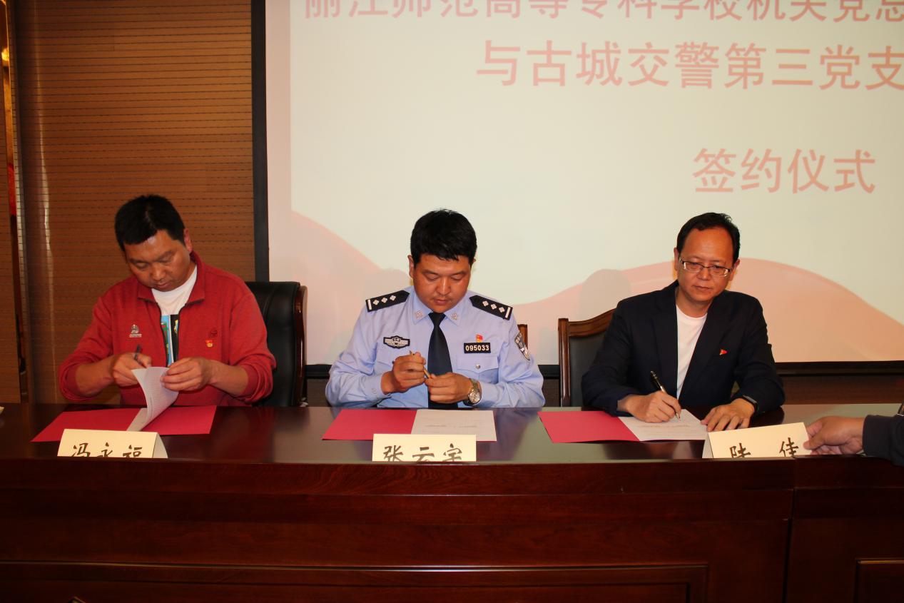 会上,机关党总支第五党支部书记冯永福同志领学了习近平总书记关于安全生产重要论述;丽江市公安局古城分局交警大队第三党支部书记张云宇同志带领全体党员重温入党誓词;三位支部书记共同签署“支部联建”活动协议书,建立长期、紧密的党建共建合作关系。机关党总支书记徐安绕同志对交警们的辛勤付出表示由衷钦佩和衷心感谢,并详细介绍了学校和机关党总支的相关情况,希望双方在党建共建中充分发挥资源优势,适时开展党的创新理论“联学”、基层组织“联建”、组织生活“联办”、党员干部“联培”、群团组织“联动”、党建引领高质量发展“联创”,着力构建互帮互助、携手共进、互促共赢的党建工作共同体。