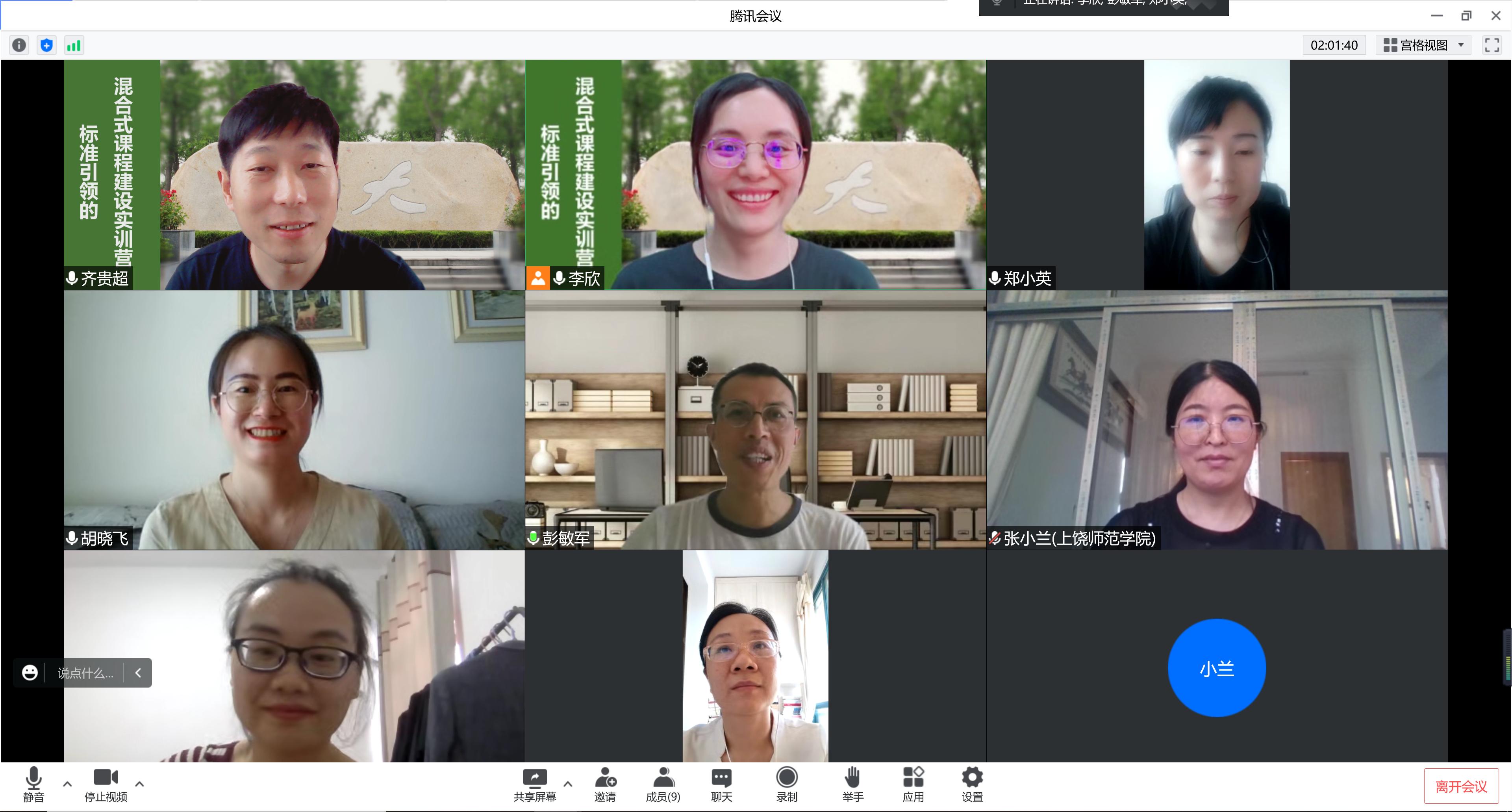 此次培训紧紧围绕《华东师范大学混合式课程标准》进行。通过“超星平台”发布学习资料、学习任务。华东师范大学的优秀教师团队又通过“腾讯会议”对课程标准的各项指标进行详细解读,再通过小组研讨增强学员对指标的理解和掌握程度。学校5名教师参加了研修学习,其中郑小英老师的《现代教育技术》课程作为第五组的案例进行评课分析。