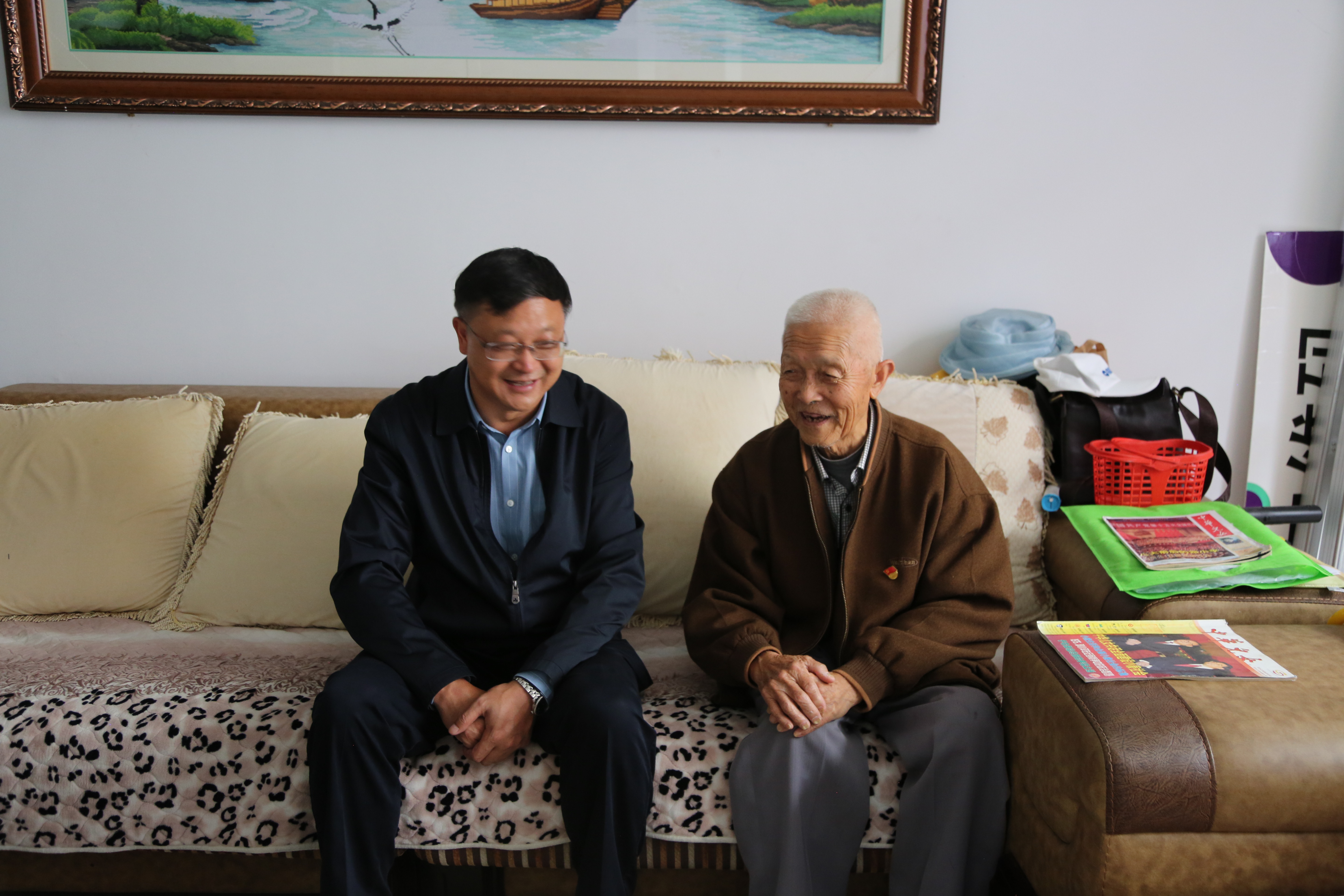 在94岁退休教师侯品钟家中,校长毕天云向他详细介绍了学校现状,专升本工作的推进请况等。他说,天气转凉,望老教师一定要保重身体,希望他们一直关心和支持学校的发展。