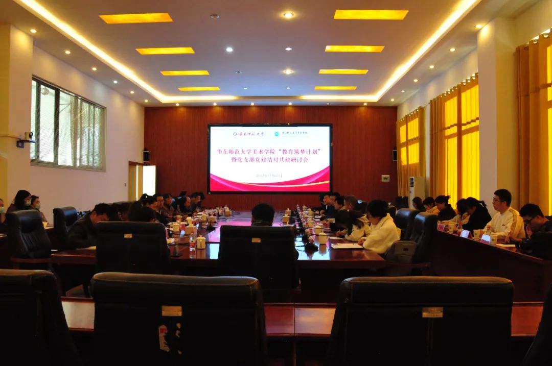 11月17日上午,华东师范大学美术学院“教育筑梦计划”暨党支部党建结对共建研讨会在第三会议室召开。华东师范大学美术学院党委副书记冯舸、艺术文创研究院院长张晶、美术学院教工党支部书记朱浒、艺术文创研究院副院长徐中锋、美术学院硕士研究生党支部11名学生党员、学校党委副书记彭鸿昌、组织部、教务处、对外合作交流中心相关负责人以及艺术学院领导班子、学生党支部、美术教育教研室全体教师参加会议。