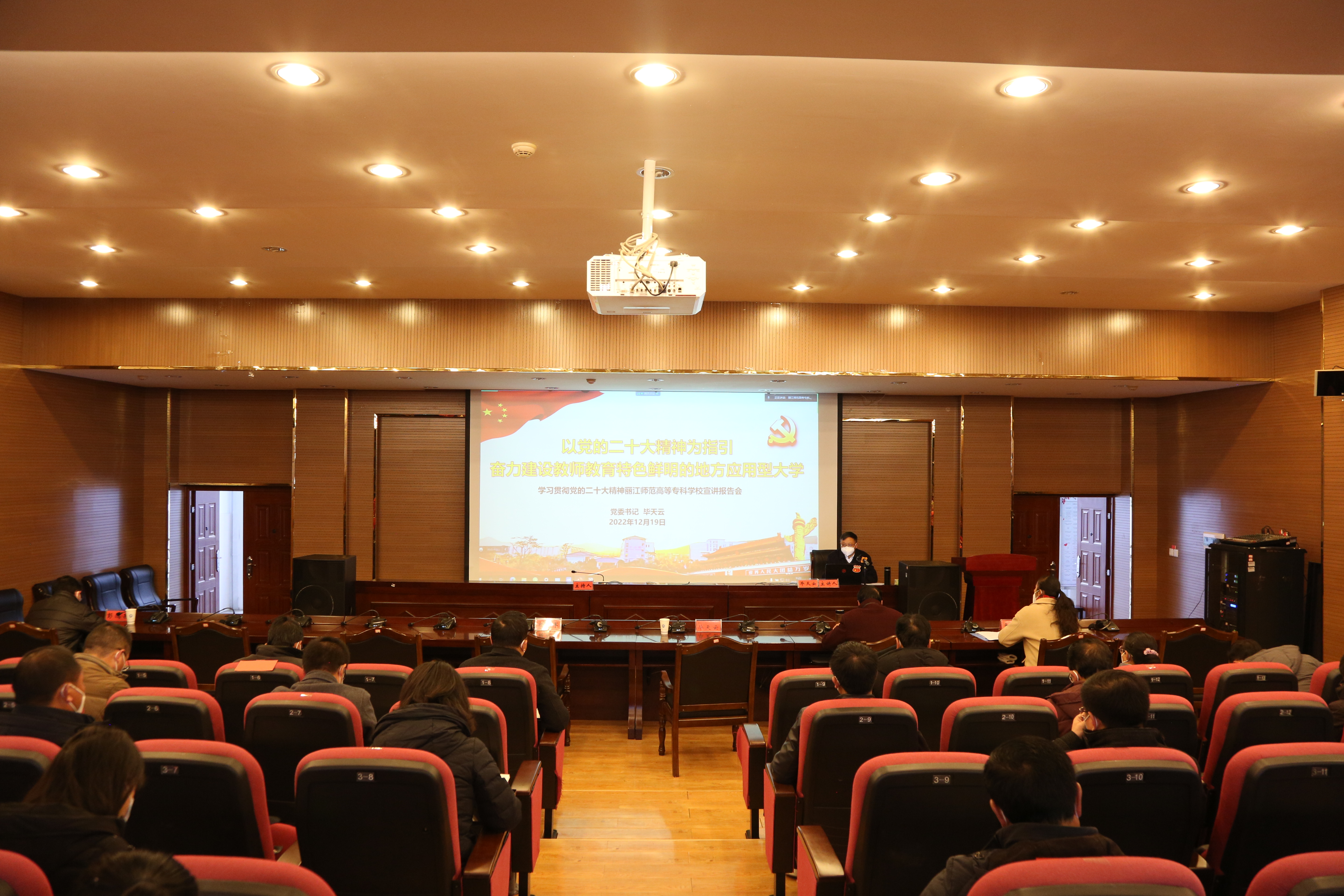 12月19日上午,学习贯彻党的二十大精神学校党委宣讲团报告会通过线上线下相结合的方式举行。省委教育工委宣讲团成员,学校党委宣讲团团长、党委书记毕天云作宣讲报告,党委副书记彭鸿昌主持报告会。
