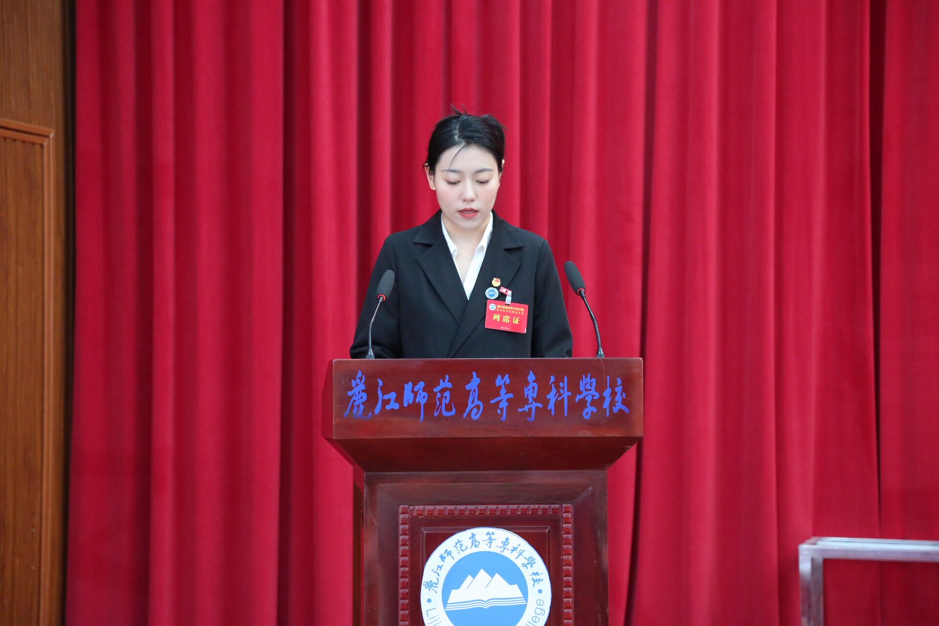 学生会主席团成员龙琦同学代表第四届学生会委员会作《乘风破浪写新篇 奋楫扬鞭展新姿 为擘画学生会新蓝图团结奋斗》的工作报告,全面回顾和总结了过去一年的工作,从“坚守理想信念,高奏主旋律;凝聚丽师学子,发挥合奏力;自觉担当尽责,展现知行力”三个方面明确了今后学生会的工作目标和任务。