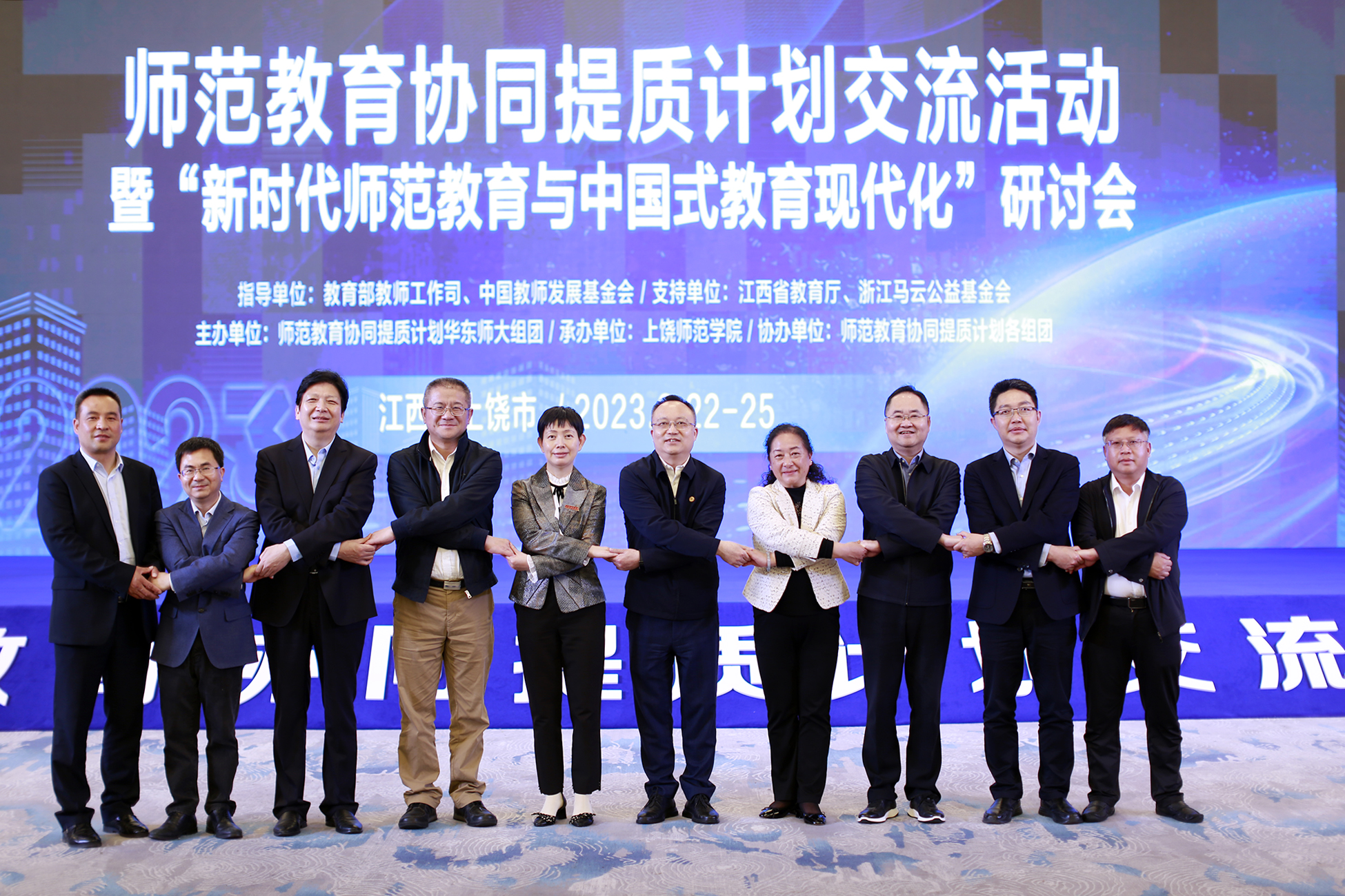 3月23日,教育部师范教育协同提质计划交流活动在江西上饶举行。协同提质计划72所师范院校和相关省级教育行政部门负责同志等近300人参加交流活动。WilliamHill官网校长陈本辉、副校长张兰胜和科技处负责人参加交流活动。