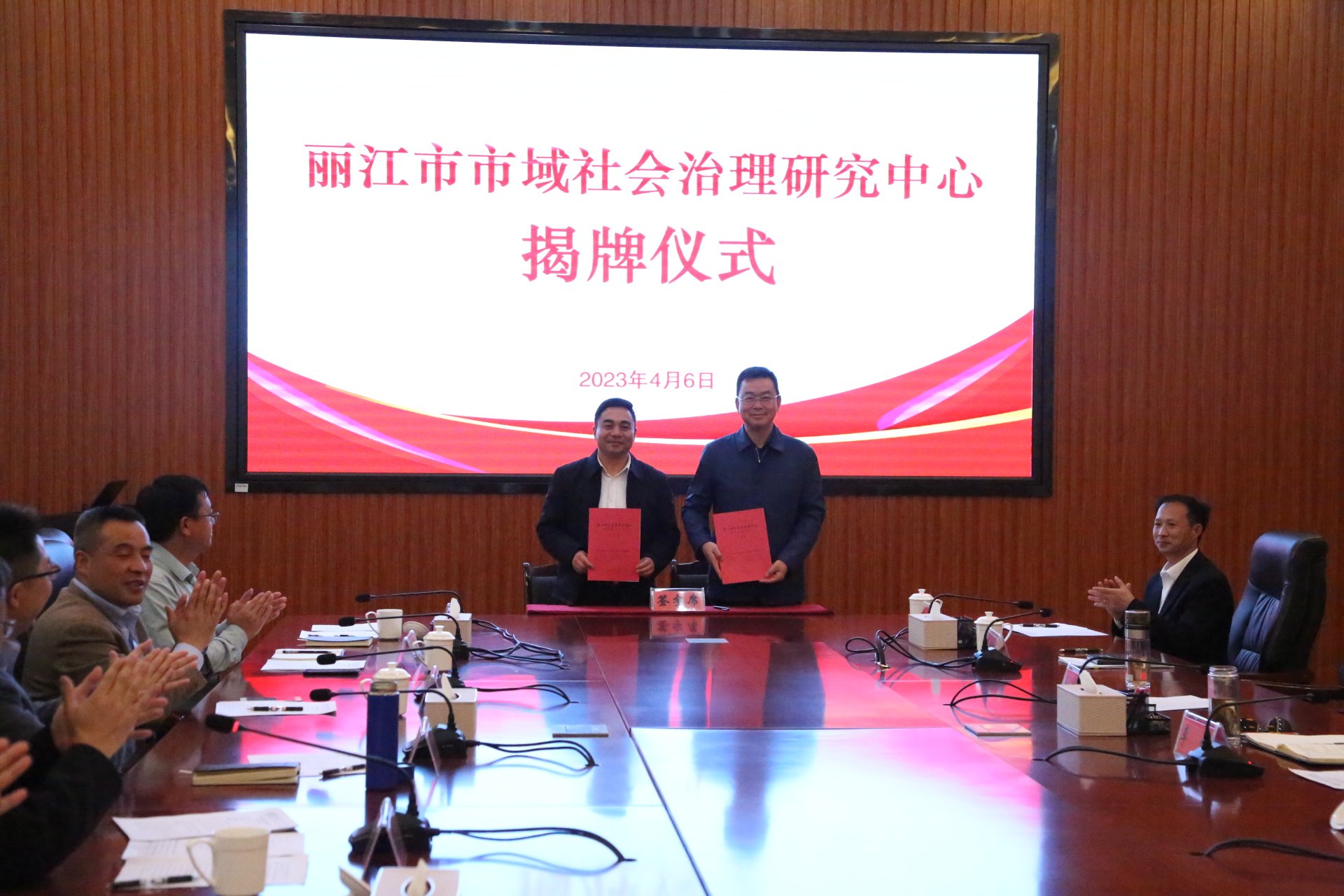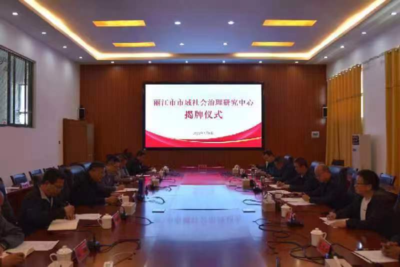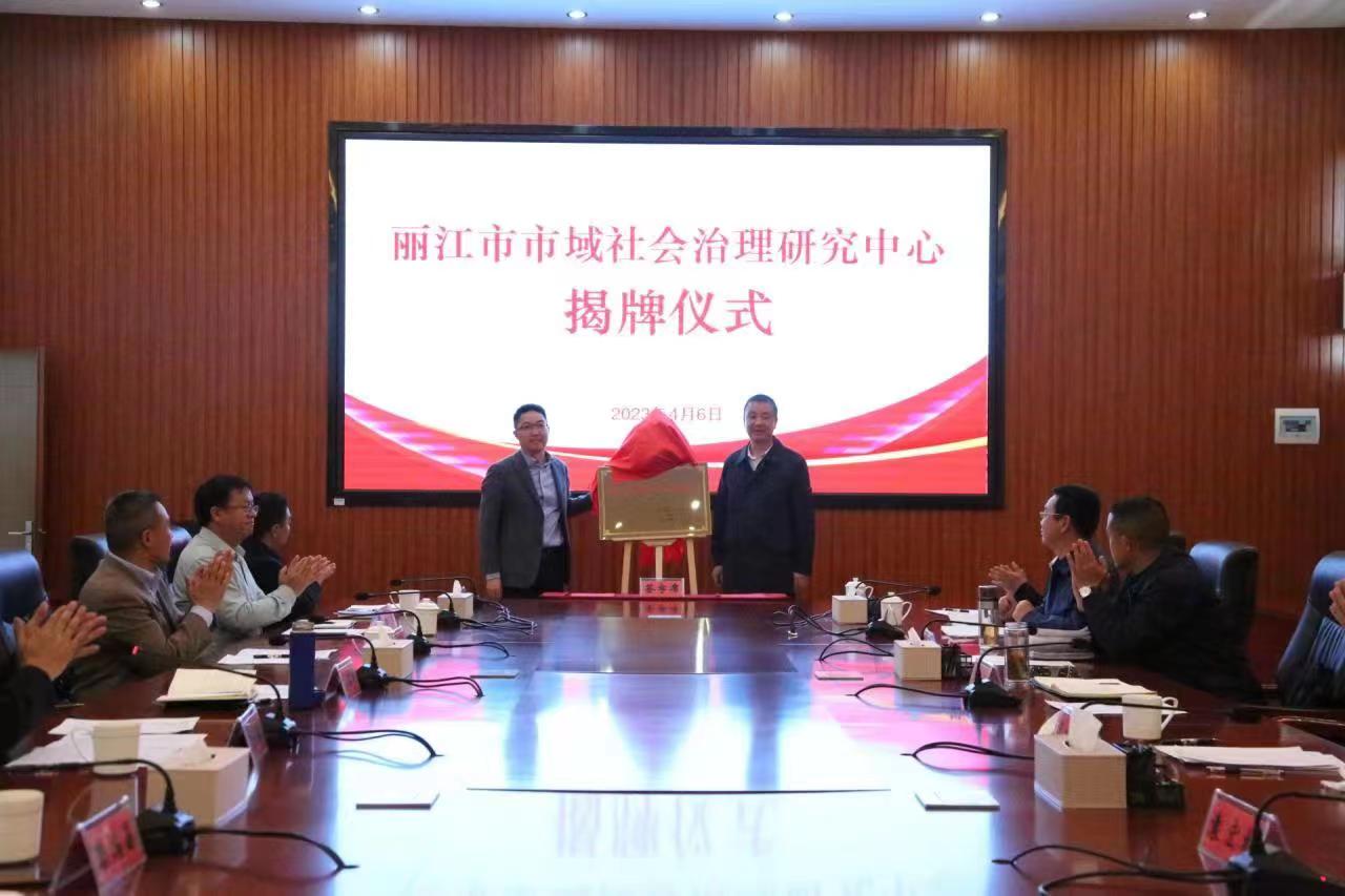 李锐和陈本辉共同为“丽江市市域社会治理研究中心”揭牌。