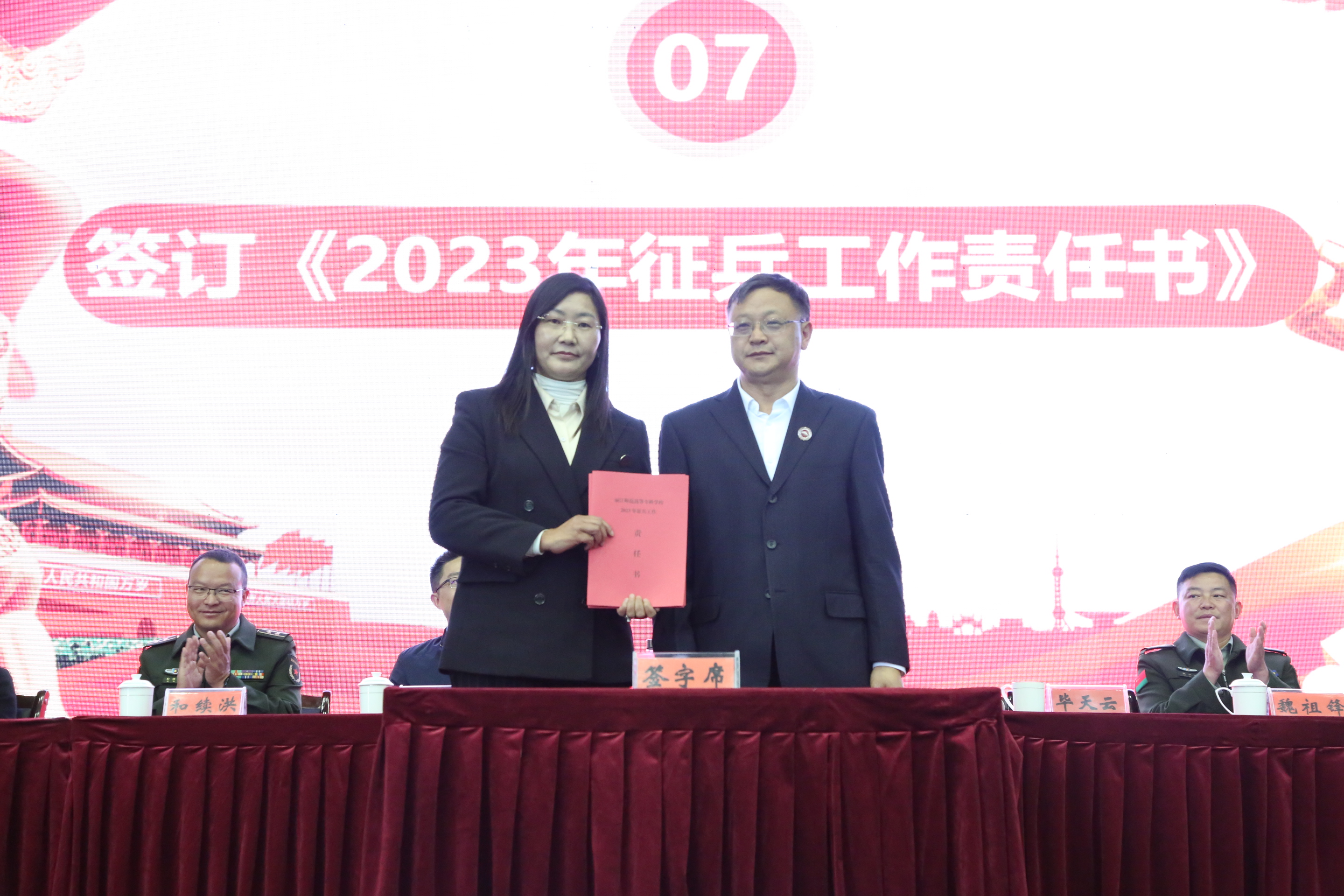 毕天云与各学院签订2023年征兵工作责任书。
