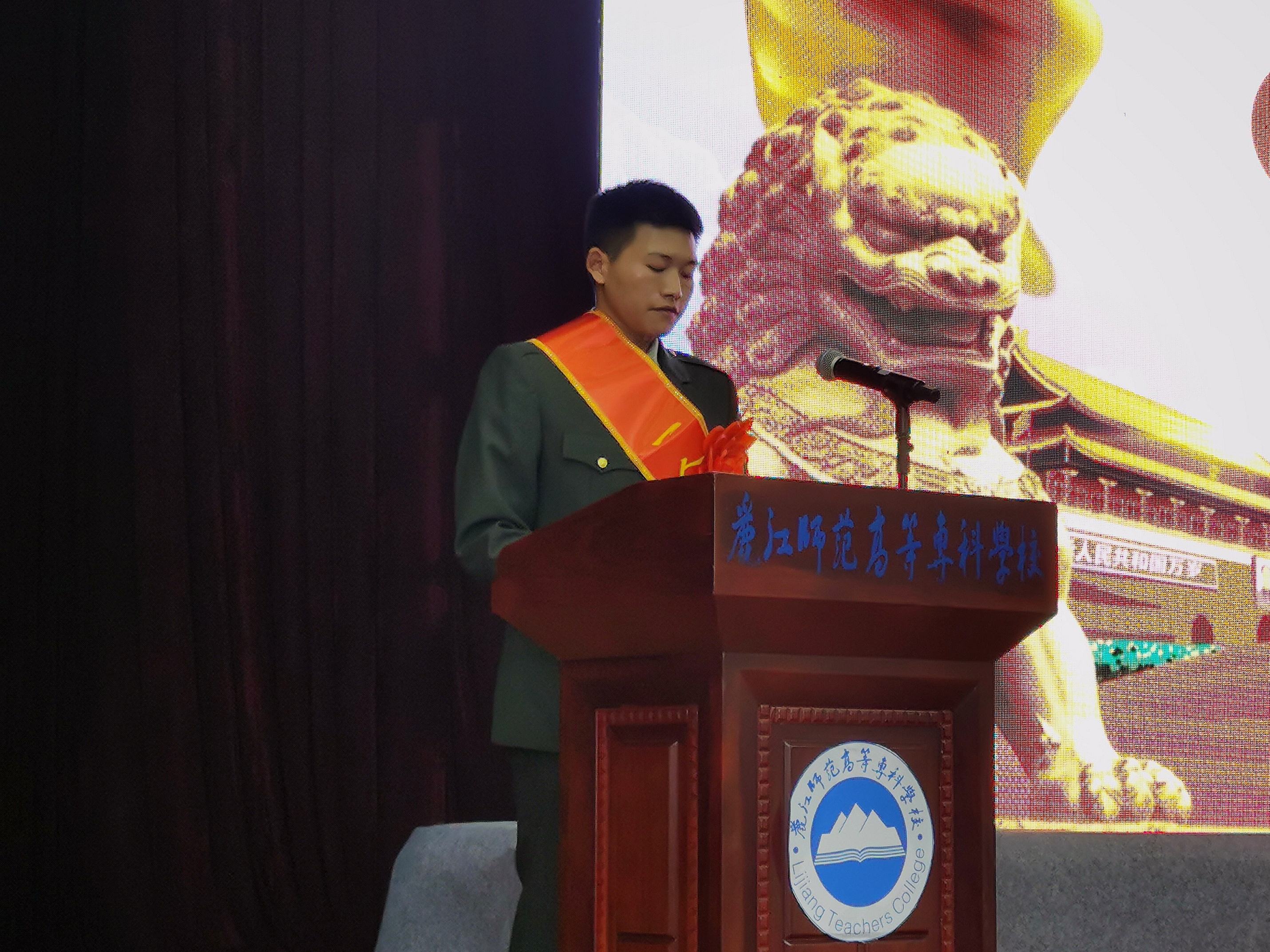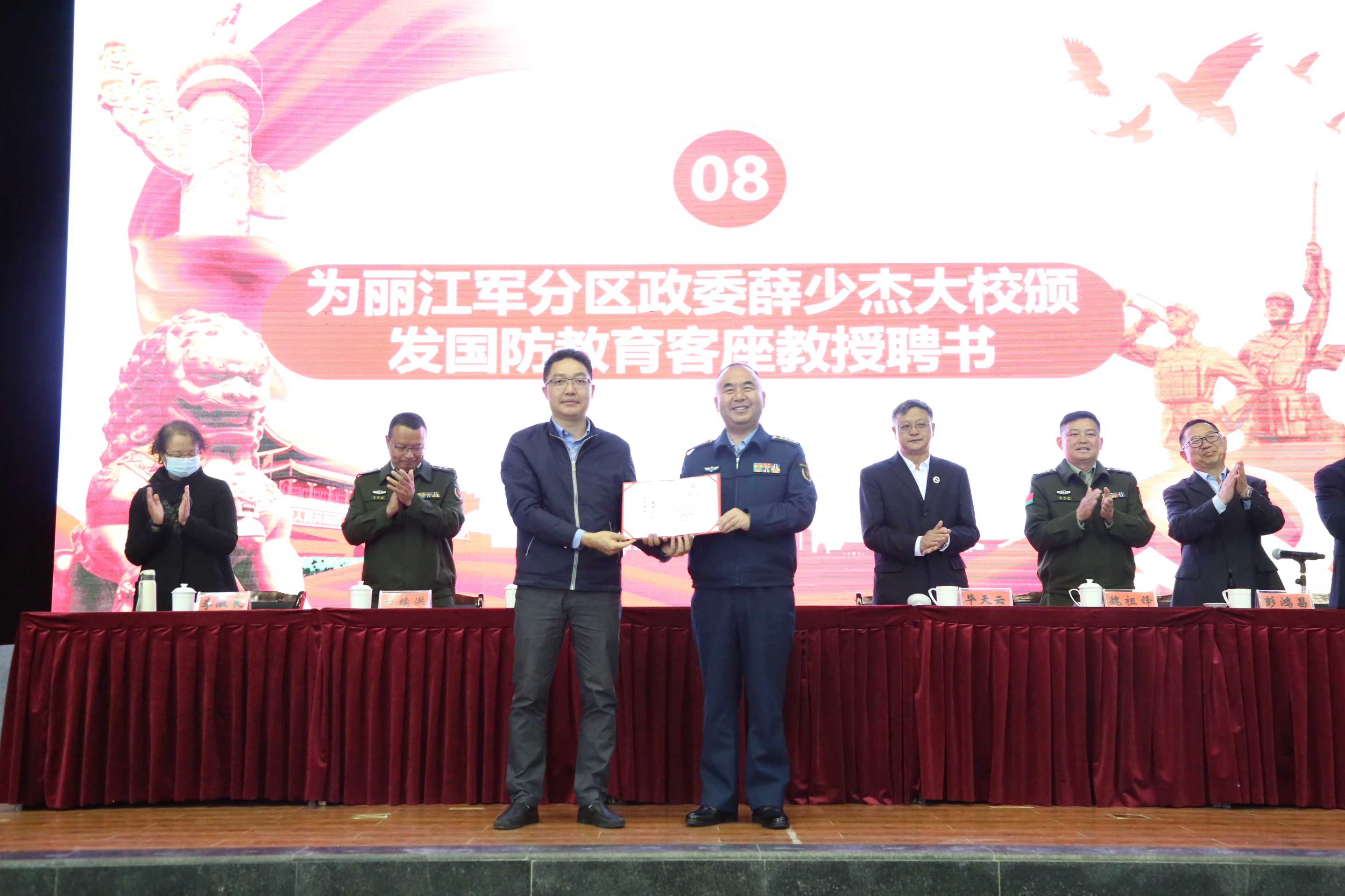 薛少杰讲话。他充分肯定了学校在征兵工作、学生军训、国防教育等武装工作方面取得的成绩,代表军分区党委对学校表示感谢。同时,向师生介绍了新修订的《征兵工作条例》,他希望大家再接再厉,军地合力共同推进丽江市武装工作建设发展迈向新台阶,努力为全市国防教育事业贡献自己的力量。