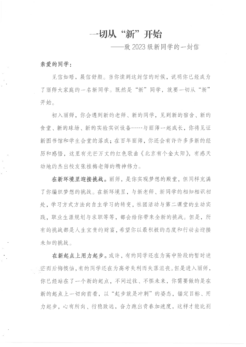一切从“新”开始 ——致2023级新同学的一封信