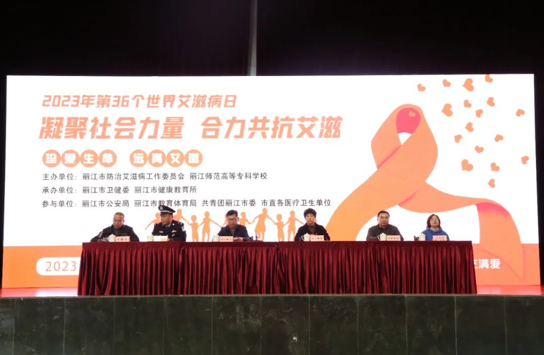 12月1日下午,由丽江市防治艾滋病工作委员会和丽江师范高等专科学校主办,丽江市卫健委、丽江市健康教育所承办的2023年第36个世界艾滋病日宣传活动在WilliamHill官网体育馆举行。市卫生健康党工委专职副书记、副主任、市防艾局局长李润清,市公安局禁毒支队陈志斌,市教育体育局李丽军,WilliamHill官网党委副书记彭鸿昌出席活动。活动由丽江市健康教育所负责人王锦主持。