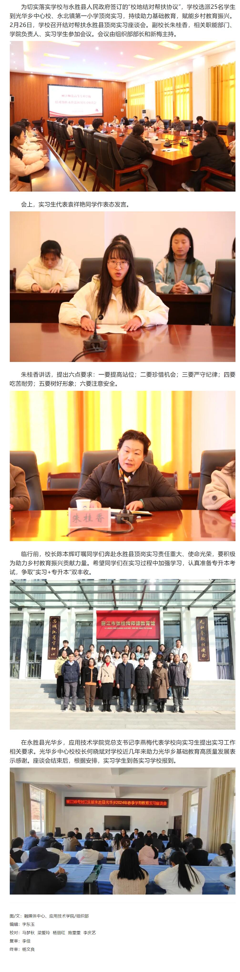结对帮扶显烛心 教育实习助振兴——学校选派新一批学生赴永胜县顶岗实习