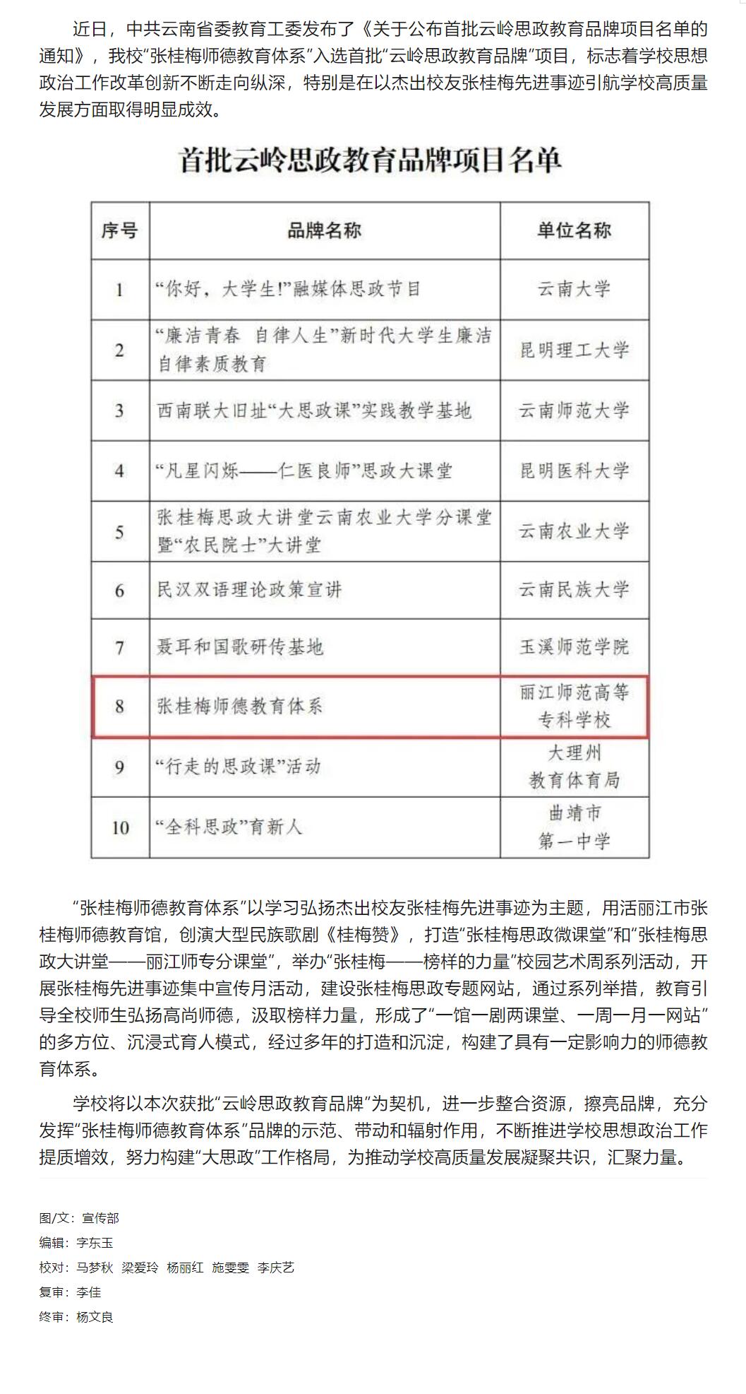 品牌丽师丨学校“张桂梅师德教育体系”入选“云岭思政教育品牌”项目