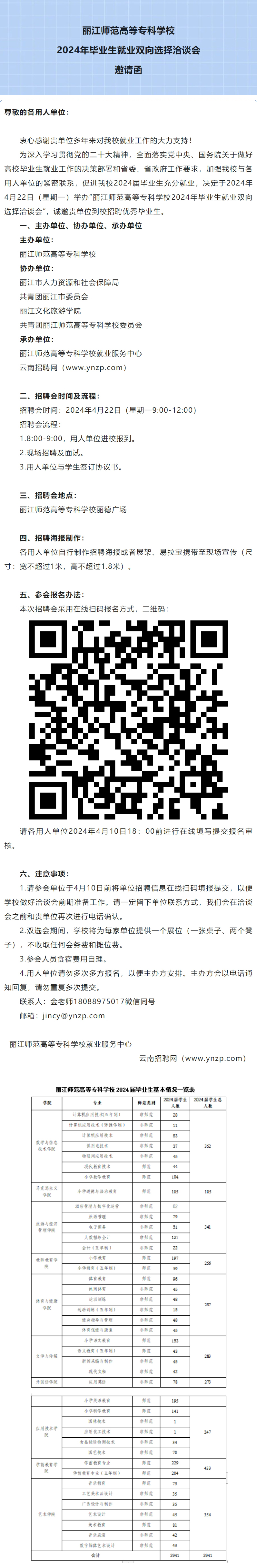 丽江师范高等专科学校2024年毕业生就业双向选择洽谈会邀请函