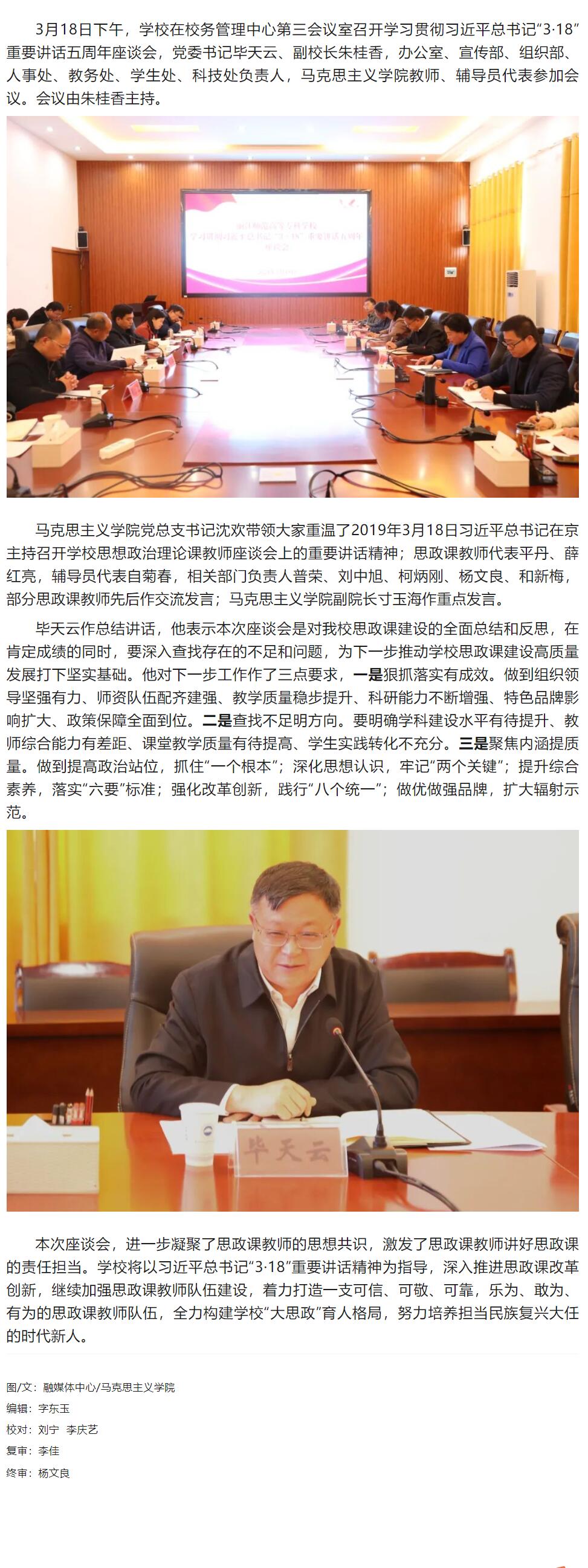 学校召开学习贯彻习近平总书记“3·18”重要讲话五周年座谈会
