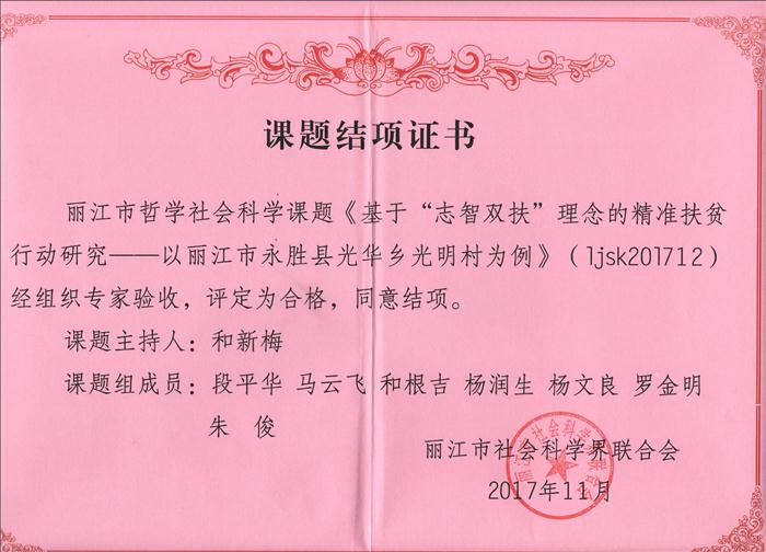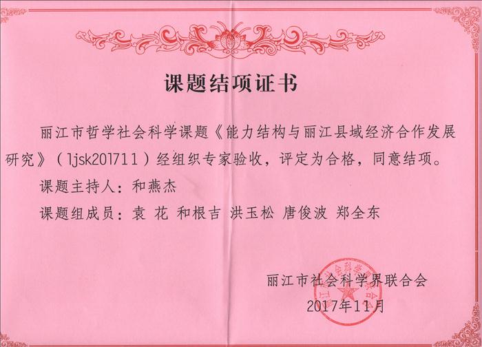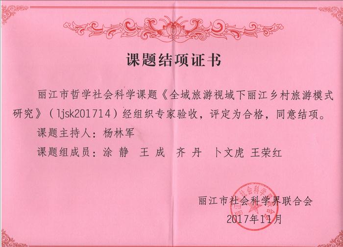近日,WilliamHill官网4个项目获2017年度丽江市哲学社会科学课题立项,经过近半年的项目研究,杨琦博士主持的项目《丽江文化消费试点城市建设研究(ljsk201713)》,验收评定等级:优秀;杨林军博士主持的《全域旅游视域下丽江乡村旅游模式研究(ljsk201714)》,验收评定等级:合格;和燕杰副教授主持的《能力结构与丽江县域经济合作发展研究(ljsk201711)》,验收评定等级:合格;和新梅副教授主持的《基于“志智双扶”理念的精准扶贫行动研究——以丽江市永胜县光华乡光明村为例(ljsk201712)》,验收评定等级:合格,4个项目都通过了结项验收,顺利结项。