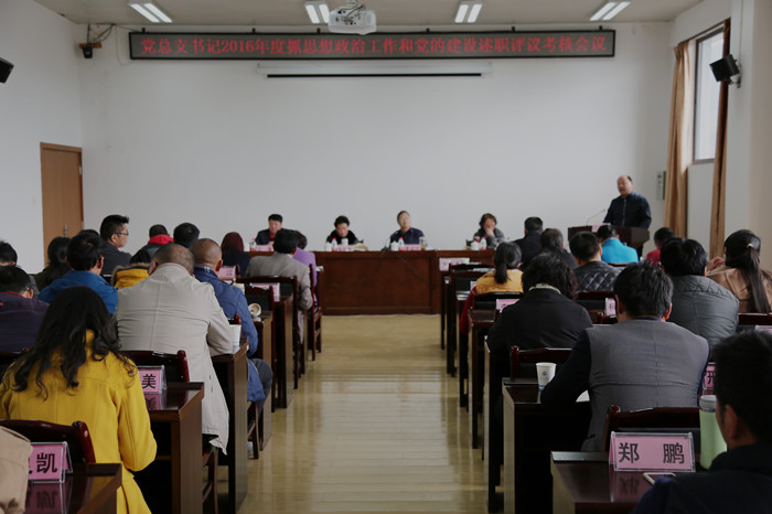 3月20日下午,WilliamHill官网在第四会议室召开党总支书记2016年度抓思想政治工作和党的建设述职评议考核会议。党委书记蒋成旭主持会议,副校长朱桂香、纪委书记李淑良、党委委员组织部长王曙及各党总支书记、支部书记、党代表、教工代表以及党员教师代表参加了会议。