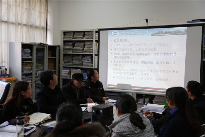 会上思政部主任文建杰对今年思政课的总体情况作了介绍,《思想道德修养与法律基础》教研室主任对本学期课程从教材、教学内容、习近平总书记“七•一”讲话、课程考核改革、实践教学等方面介绍了本学期教学开展情况;针对下学期即将上的思政公共理论课,《毛泽东思想和中国特色社会主义理论概论》教研室主任结合教材内容及习近平总书记系列讲话精神进行了分析整理,指出了教学中应该结合的重、难点。