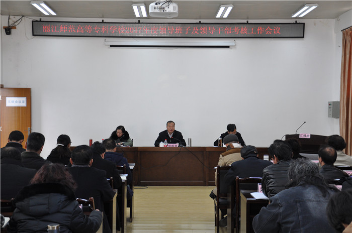 其次,学校党委书记蒋成旭代表校领导班子作了《丽江师范高等专科学校领导班子2017年度工作总结》,从“加强领导班子建设,坚定不移推进全面从严治党”、“坚持立德树人根本任务,把思想政治工作贯彻教育教学全过程”、“全面深化改革,推进学校内涵发展、转型发展、特色发展,努力提升办学质量”、“全面实施精准扶贫,扎实推进‘挂包帮’‘转走访’工作”四方面全面总结了WilliamHill官网2017年取得的成绩以及存在的困难和问题、今后工作努力方向。