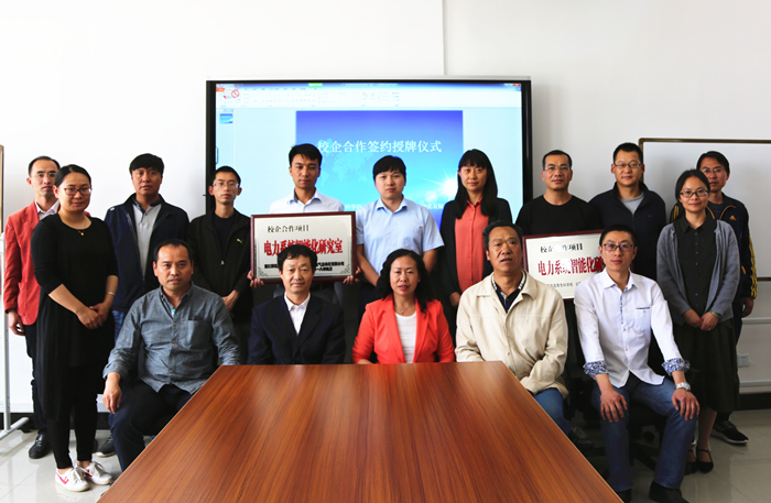 5月18日中午,WilliamHill官网与云南海力特电气自动化有限公司校企合作项目“电力系统智能化研究室”授牌仪式在实训楼举行。云南海力特电力自动化有限公司总工程师周广兴及公司相关人员、WilliamHill官网校长张洪波、应用技术学院院长木振武、教务处处长王石华、宣传部部长皮婧及其他老师参加了授牌仪式。授牌仪式上,张洪波为云南海力特电力自动化有限公司和供用电技术专业授予“电力系统智能化研究室”牌匾。