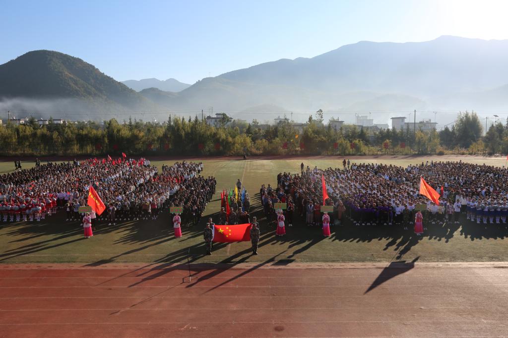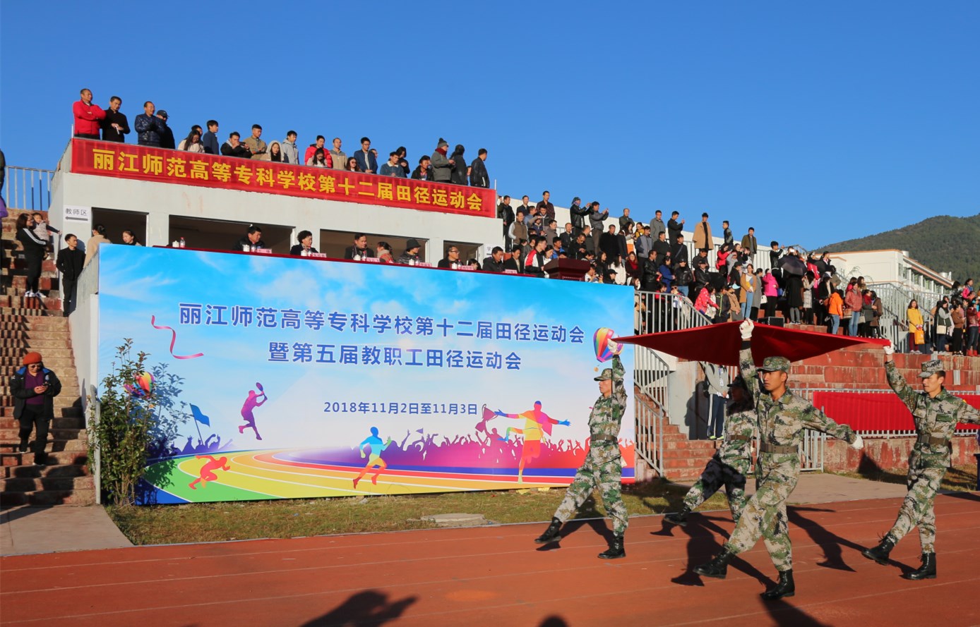 学校党委委员、体育运动委员会主任、足球运动职业学院院长王曙宣布丽江师范高等专科学校第十二届田径运动会暨第五届教职工田径运动会开幕。
