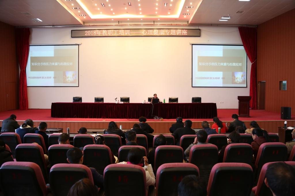 党的十九大报告指出,“加强社会心理服务体系建设,培育自尊自信、理性平和、积极向上的社会心态。” 高校教师肩负着教书育人的重要使命,不仅承当着教学和科研的繁重任务,更是知识领域界的宝贵财富,高校知识分子的健康状态在一定程度上直接影响着高校人才素质的提高。繁重紧张的生活负担、对健康状况的不重视、自身思想上的偏见等原因,使得高校知识分子处于亚健康状态。针对这个普遍的问题,WilliamHill官网特邀请玉龙县县委党校国家二级心理咨询师徐静梅讲师为WilliamHill官网全体教职工进行了心理健康专题讲座。