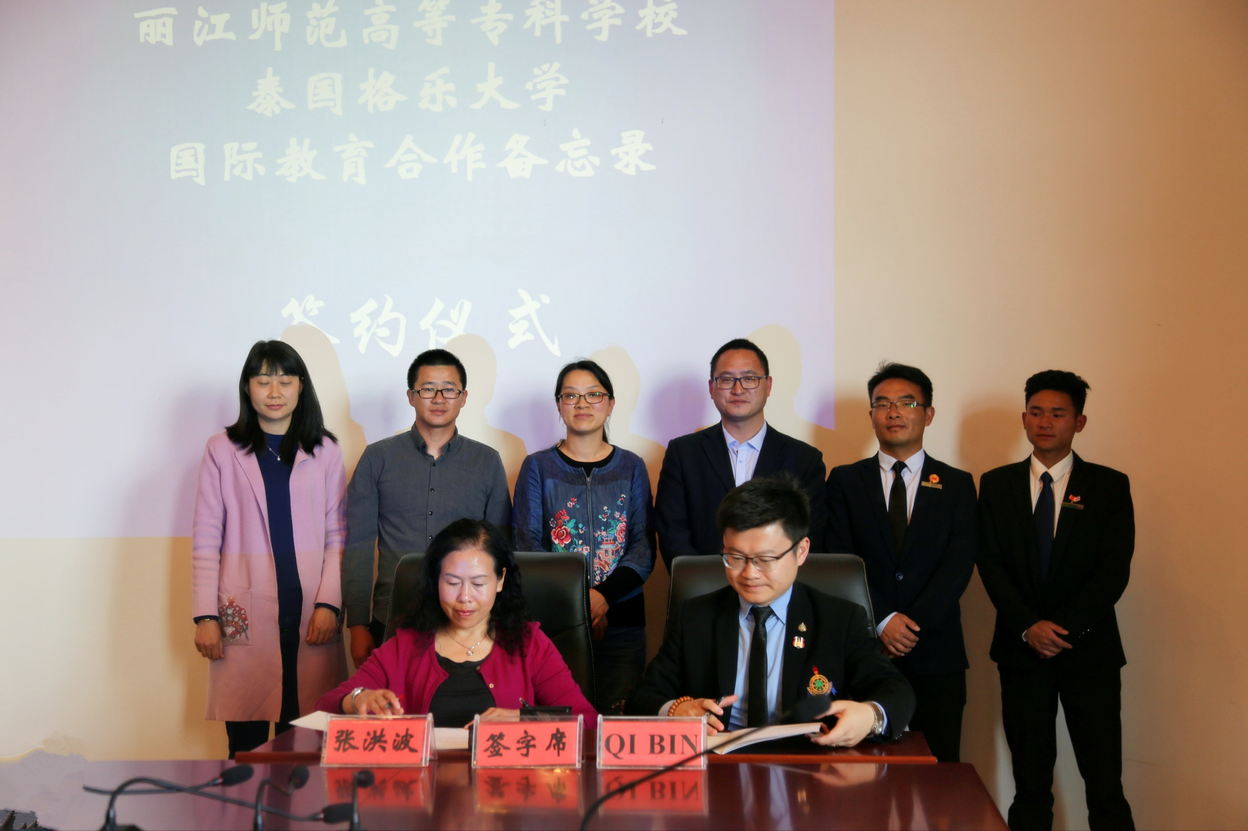 会上,两校签署了国际教育合作备忘录,针对学校管理人员及教师互访、学生互派、教学交流、教师讲学、教师进修、培训交流等达成合作意向,并合影留念。