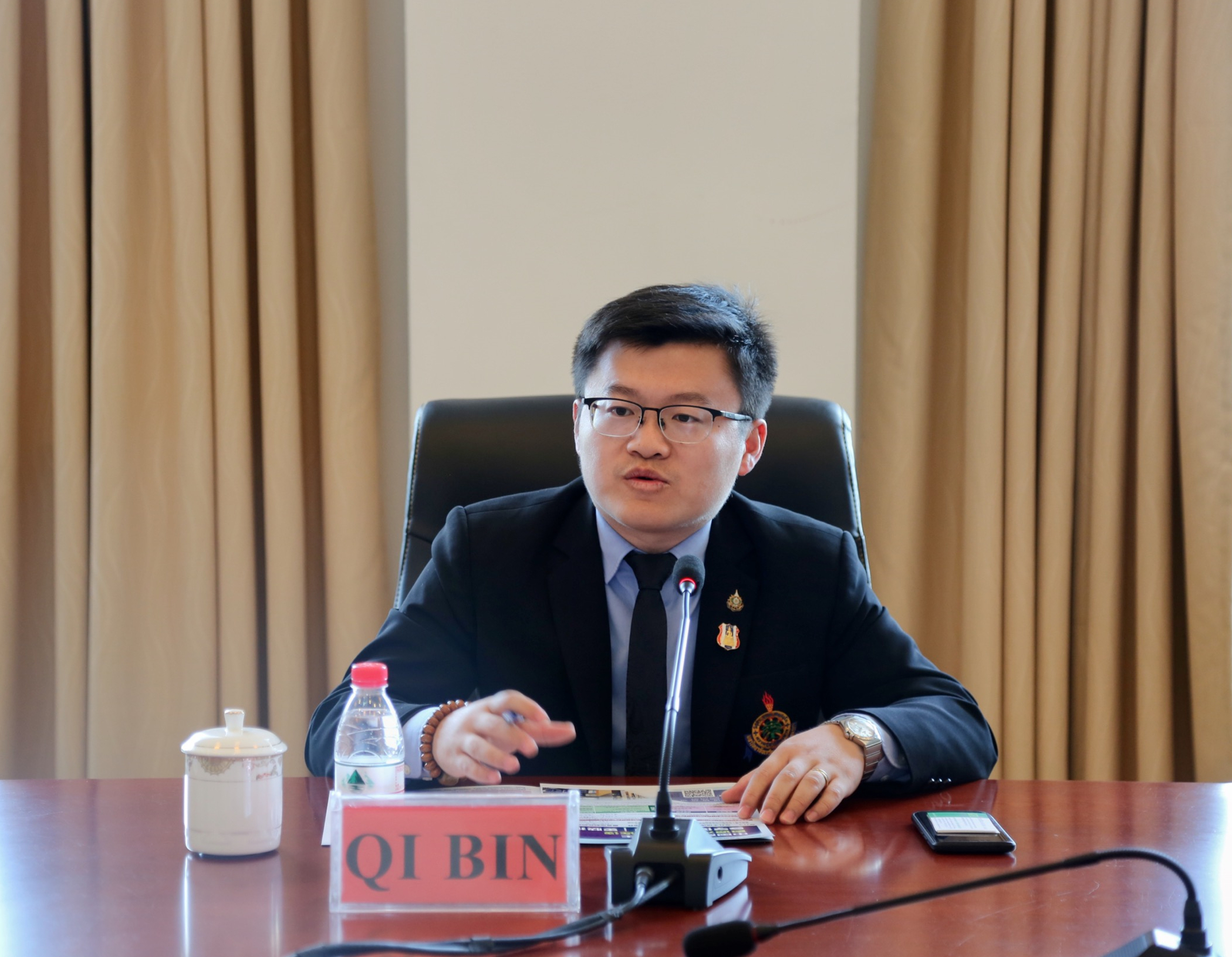 Mr. QI BIN感谢WilliamHill官网的热情接待,他简要介绍了两校的合作意向。他表示,愿意积极推进两校交流与合作,通过联合办学,加强两校间学者与师生的交流,提高人才培养质量。他指出,此次来访将迈出两校合作的坚实步伐,同时欢迎WilliamHill官网师生能到泰国格乐大学进修学习。