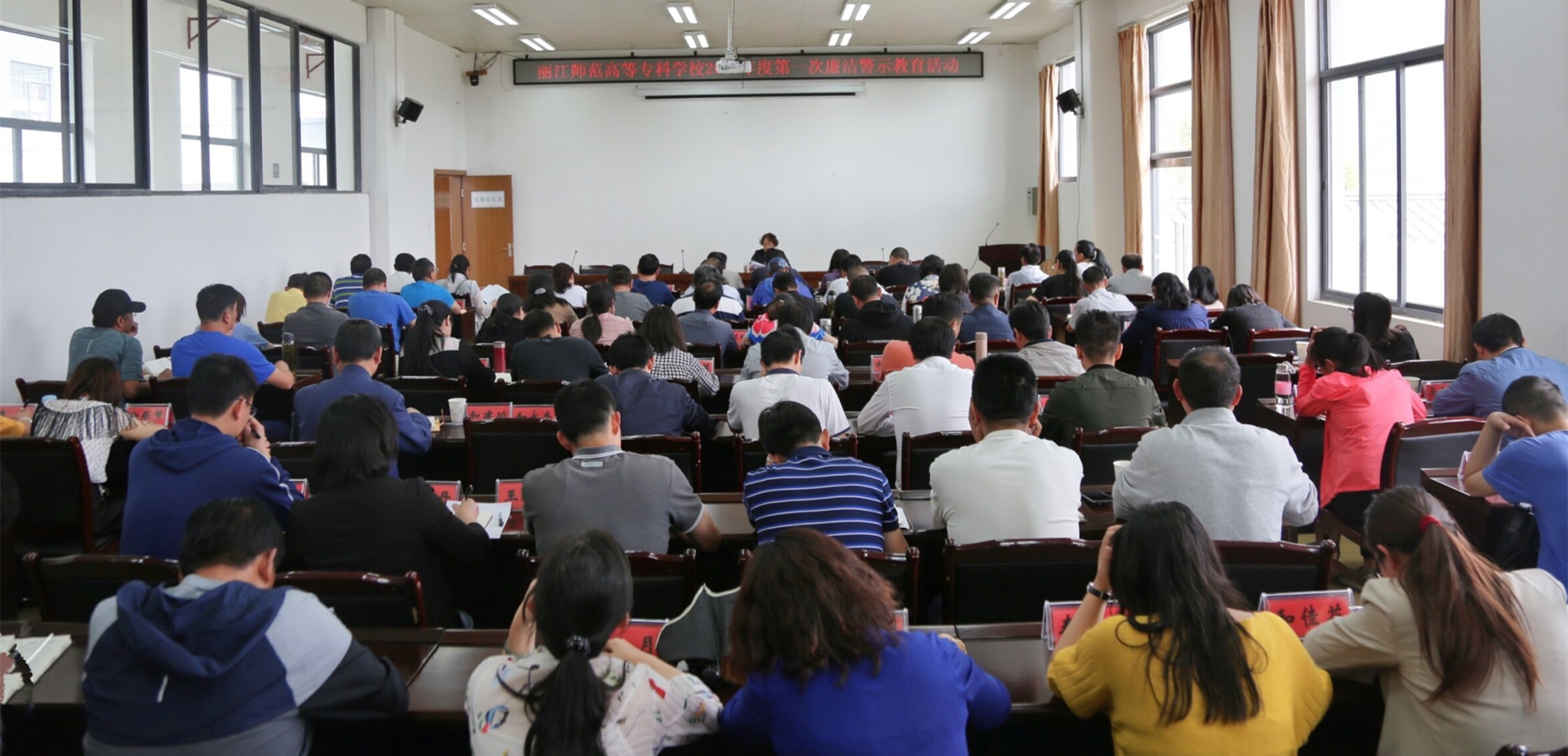 李淑良向参加廉洁警示教育活动的科以上干部提出五点要求:一是要加强学习,学以致用,知行合一;二是要遵纪守法,加强政治纪律和组织纪律;三是要管好自己,养成良好习惯,做忠诚、干净、担当的好干部;四是要运用好“四种形态”中的第一种形态,通过开展批评和自我批评,让咬耳扯袖、红脸出汗成为常态;五是要认真履职,为学校发展出力。