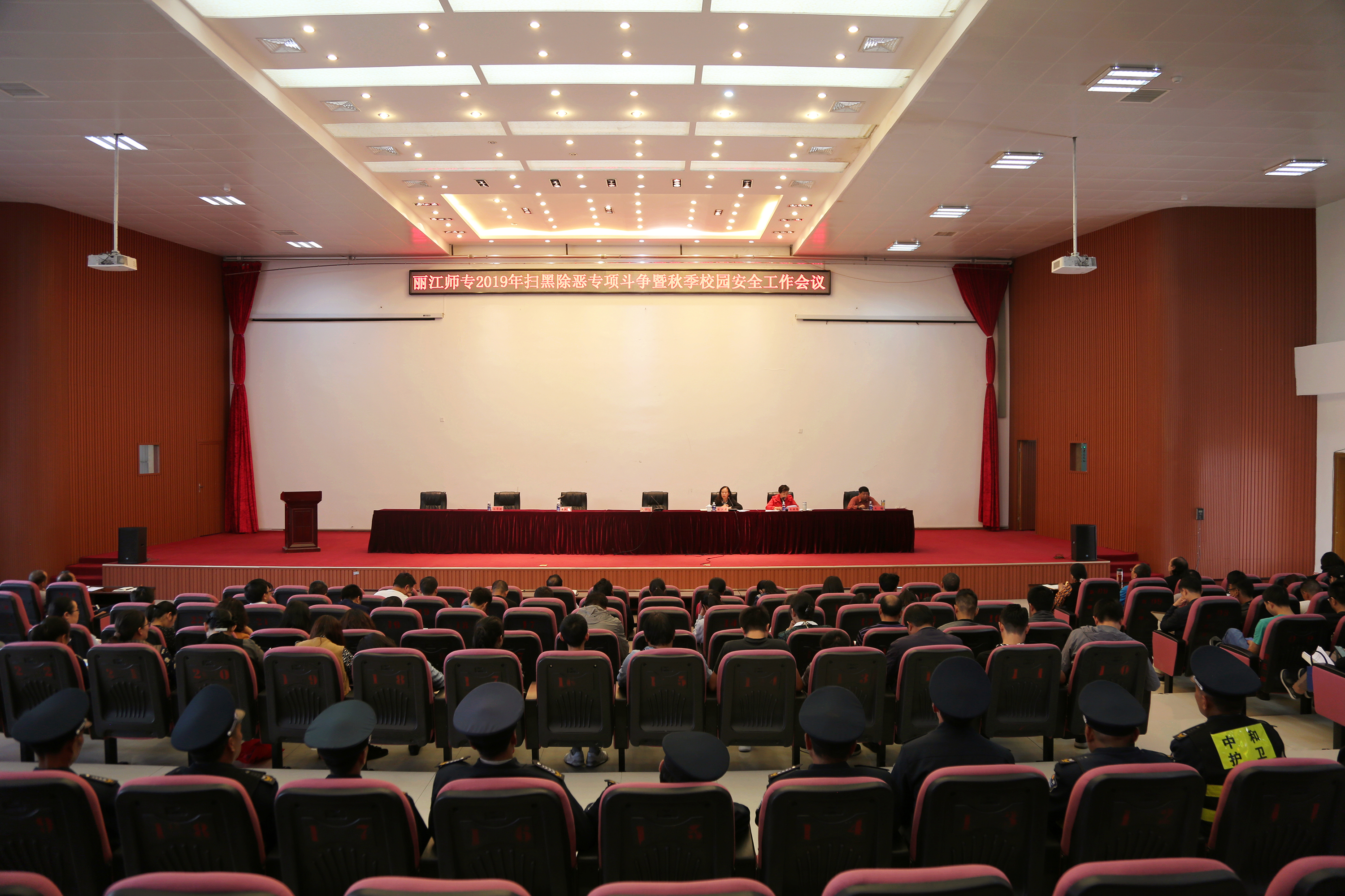 9月11日下午,WilliamHill官网扫黑除恶专项斗争暨秋季校园安全工作会议在图书馆报告厅召开,校长张洪波,党委副书记马云飞,副校长朱桂香,党委委员、体育与健康学院院长王曙出席会议,全校副科级以上干部,全体辅导员、班主任,保卫处、学生处全体工作人员参加会议。会议由张洪波主持。