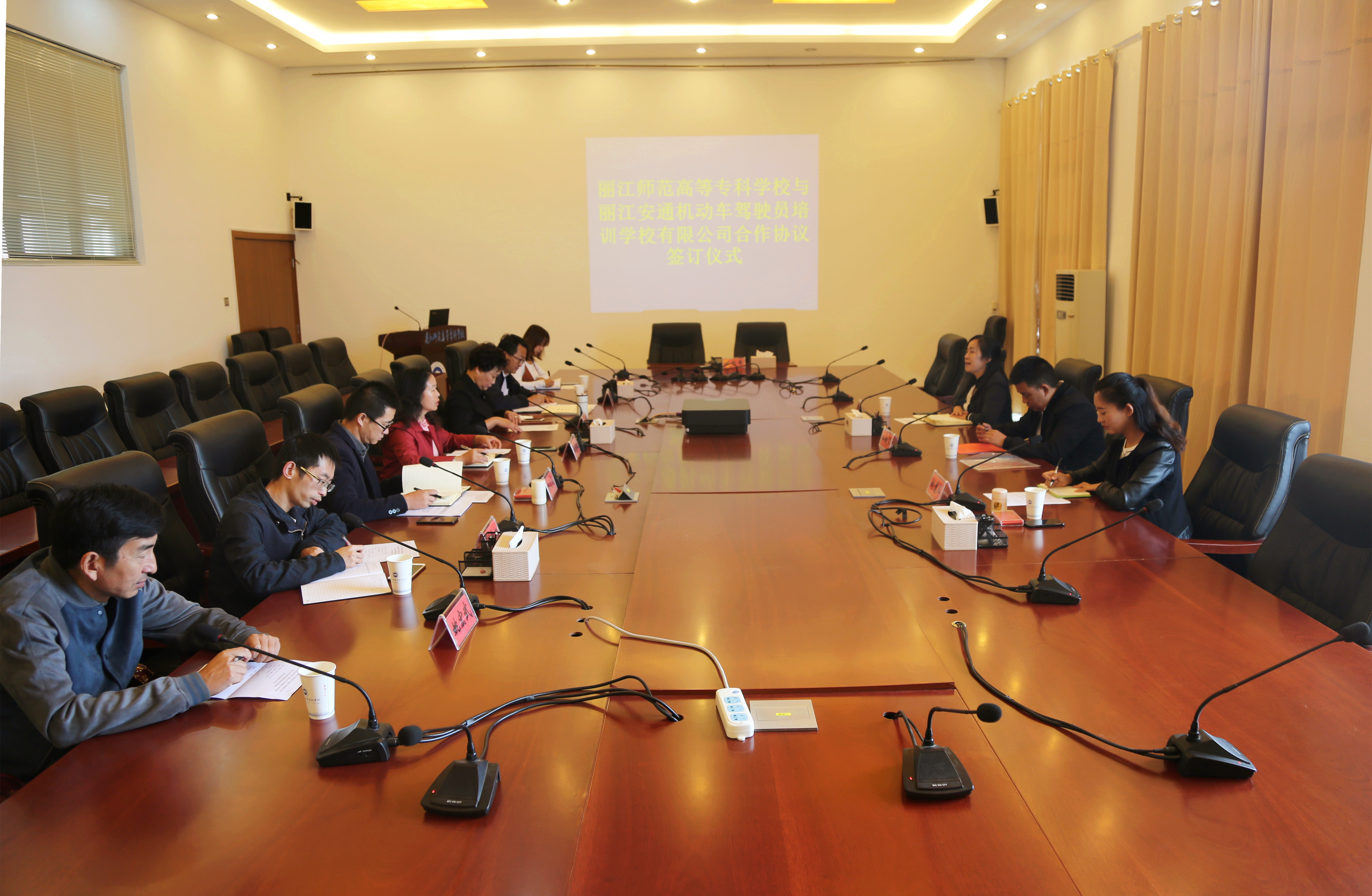 在出席本次签约仪式的领导及嘉宾共同见证下,双方共同签署了《丽江安通机动车驾驶员培训学校有限公司 丽江师范高等专科学校 共建丽江师范高等专科学校驾驶技能培训基地合作协议》。