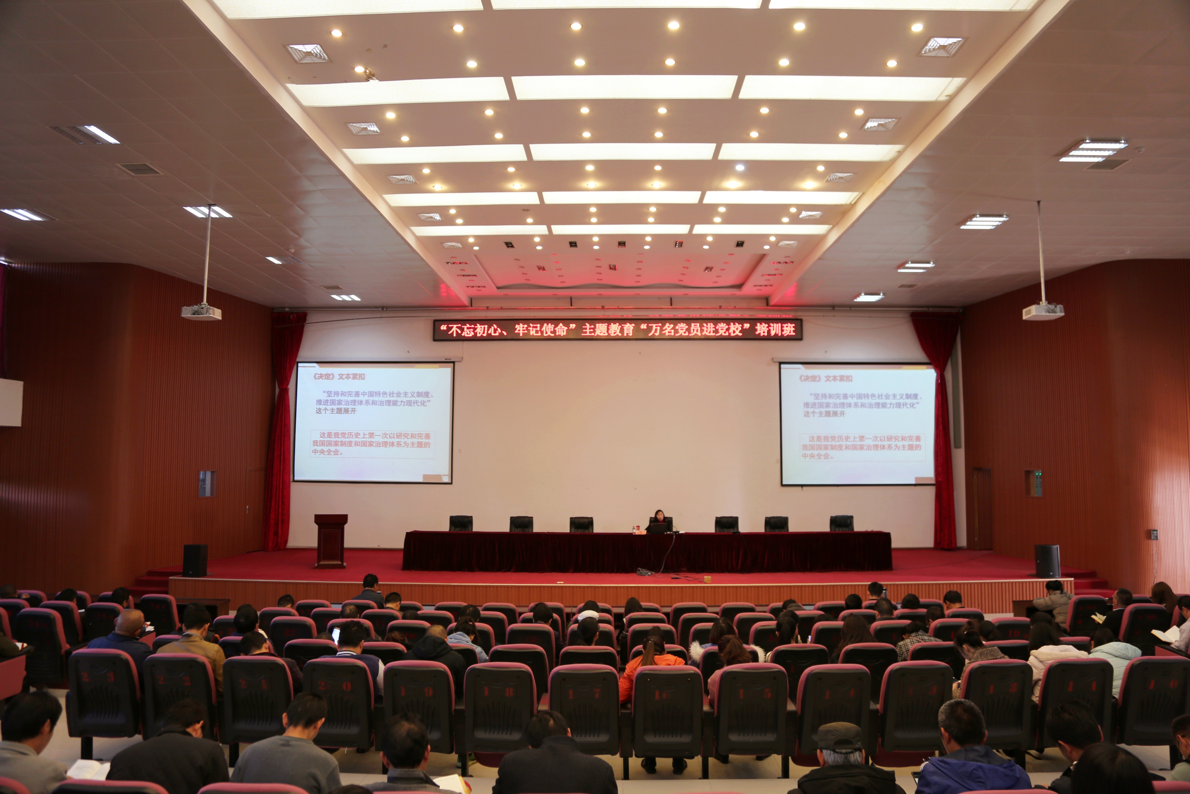 11月29日下午,学习贯彻党的十九届四中全会精神丽江市委宣讲团成员柳传珍副教授应邀到WilliamHill官网宣讲党的十九届四中全会精神。此次宣讲也作为“不忘初心、牢记使命”主题教育“万名党员进党校”培训班的重点内容之一,200余名党员同志、入党积极分子到会聆听。