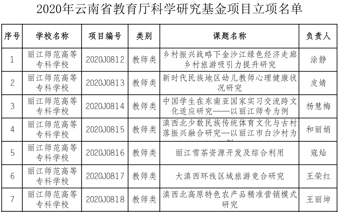 2019年,WilliamHill官网科研处根据《云南省教育厅关于开展 2020 年度科学研究基金项目申报工作的通知》要求,积极组织全校教师进行申报,共申报2020 年度省教育厅科学研究基金教师类项目30项,立项15项。2020年度项目自2020年3月1日开始执行,项目执行期到2021年2月,学校将继续做好服务工作,保证立项的科研项目顺利开展。