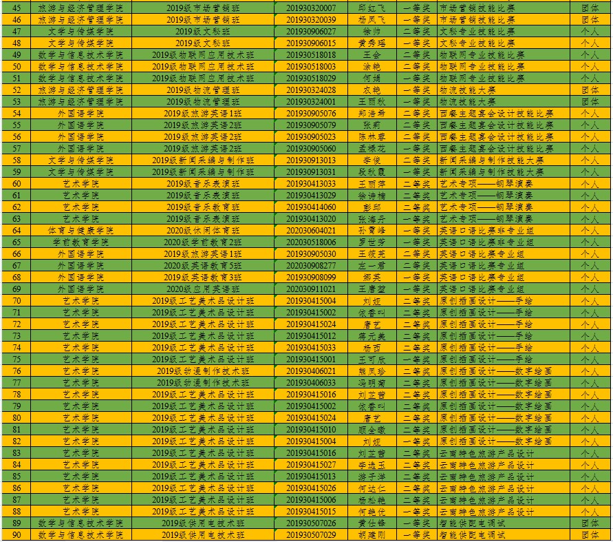 学生获奖名单一览表