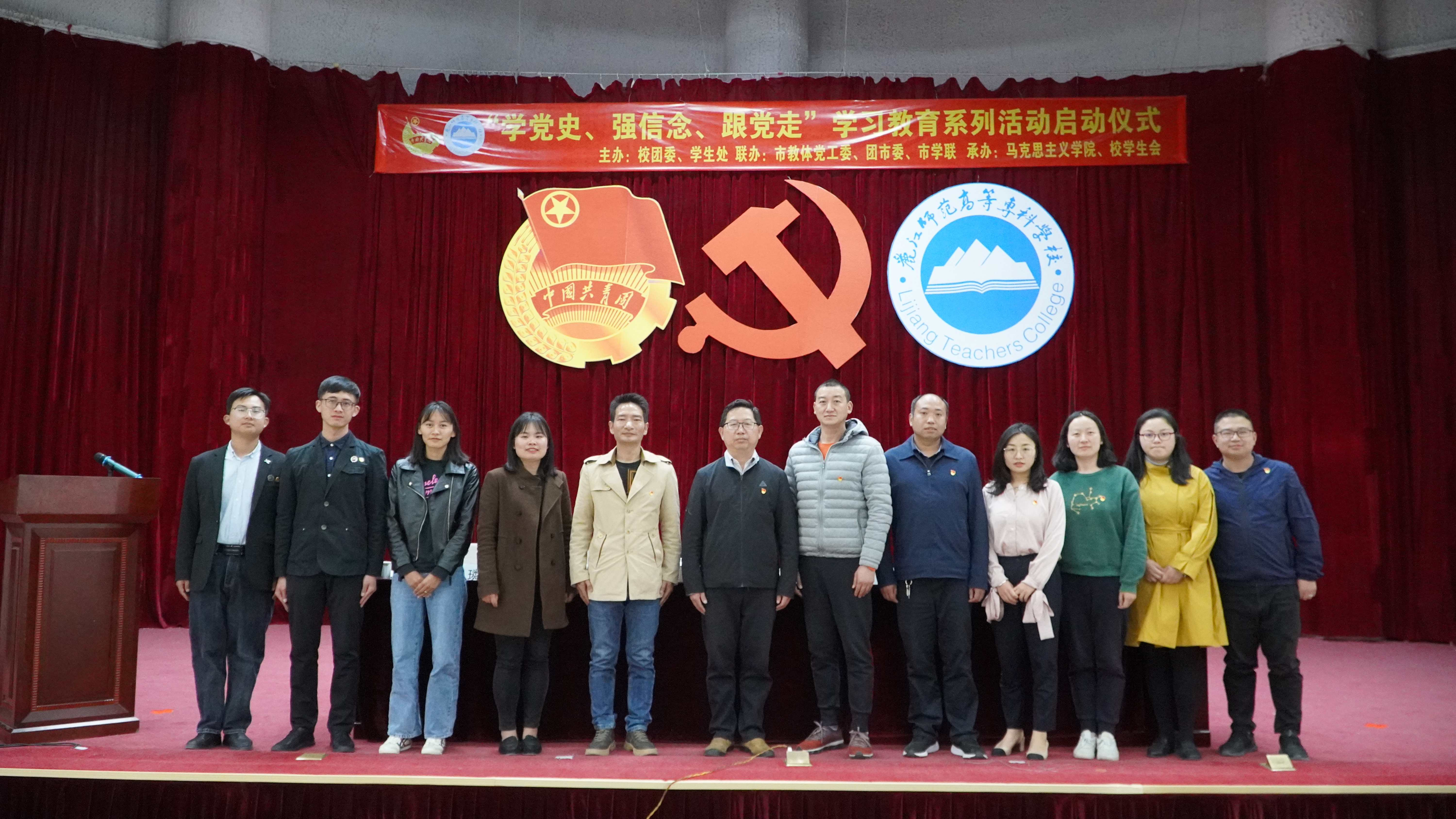 党的历史是最生动、最有说服力的教科书。我们党历来重视党史学习教育,注重用党的奋斗历程和伟大成就鼓舞斗志、明确方向,用党的光荣传统和优良作风坚定信念、凝聚力量,用党的实践创造和历史经验启迪智慧、砥砺品格。为认真学习贯彻习近平总书记在党史学习教育动员大会上的重要讲话精神,进一步落实团中央、团省委在“学党史、强信念、跟党走”学习教育中的工作部署,进一步落实好学校在党史学习教育中对共青团工作的相关要求,做到学史明理、学史增信、学史崇德、学史力行,WilliamHill官网团组织结合工作实际,于4月9日下午3点在学校艺术楼演播厅举行了“学党史、强信念、跟党走”学习教育系列活动启动仪式。此次启动仪式由校团委、学生处主办,市教体党工委、团市委、市学联联办,马克思主义学院、校学生会承办。出席本次启动仪式的领导有:校党委副书记彭鸿昌,教体党工委、团市委及市学联部分代表,校团委书记和根吉,团委办公室负责人卢璘,学生处处长刘杰,马克思主义学院党总支书记沈欢, 以及各学院团总支书记,校、院各级团学组织学生干部代表、师生代表约200余人。