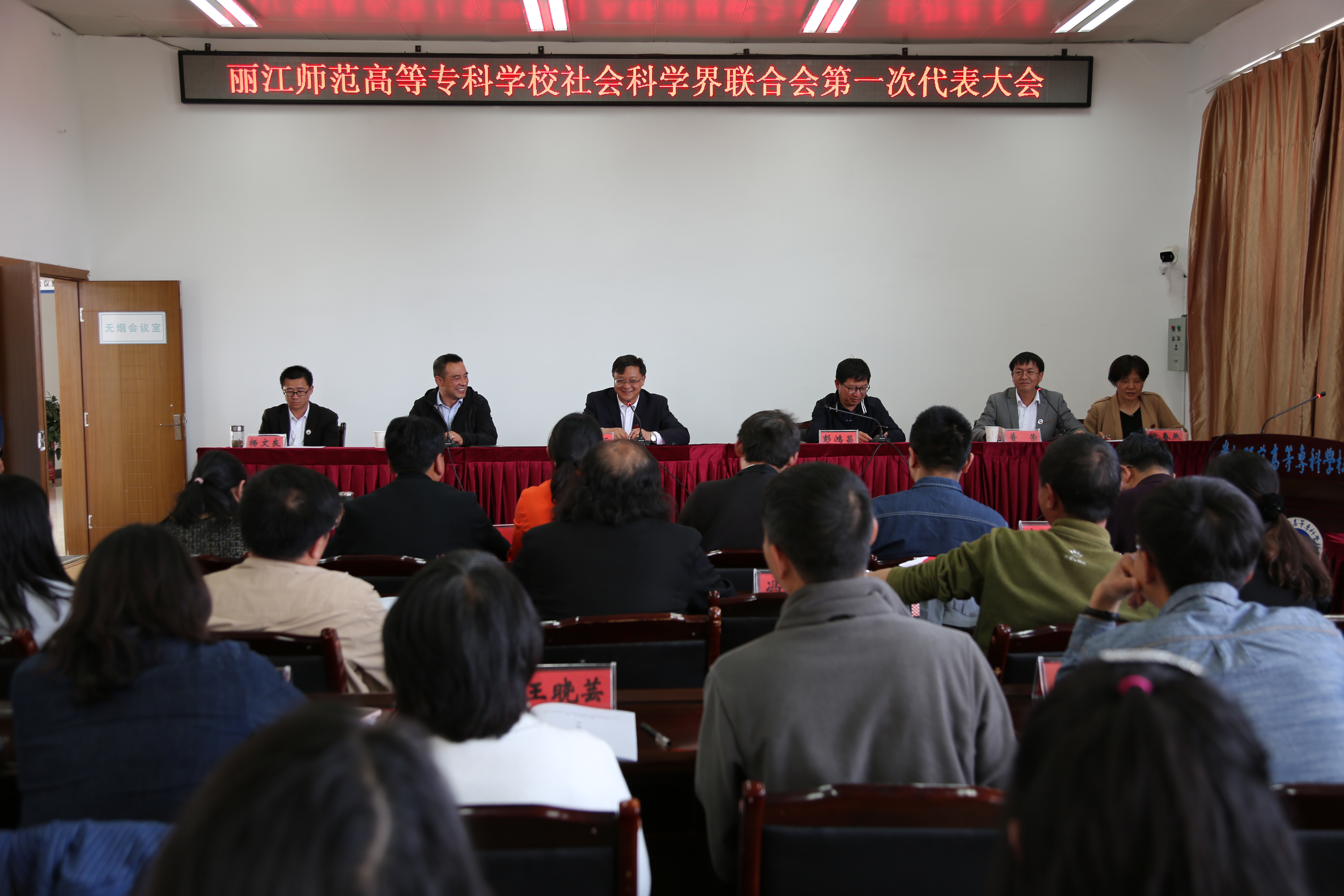 在丽江师范高等专科学校社会科学界联合会第一次代表大会上,普荣简要介绍了省社科联批复、会议筹备情况,全体代表审议并通过《丽江师范高等专科学校社科联章程(草案)》《丽江师范高等专科学校社会科学界联合会第一次代表大会委员选举办法(草案)》,并选举产生了丽江师范高等专科学校社会科学界联合会第一届委员会委员。