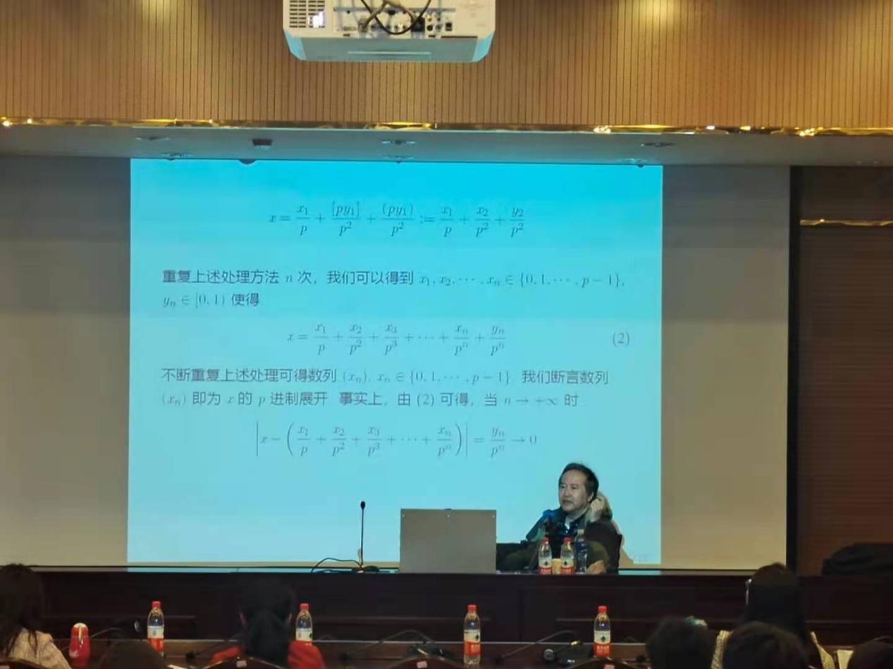4月24日上午在实训楼318室,李教授给数学与信息技术学院全体数学专业教师及部分数学教育专业学生作了题为《实数的P进制展开》的讲座。启发式的讲座让师生们明白了实数的展开可以由2进制、8进制、16进制推广到P进制,同时提出了一些尚未解决的问题供师生思考。通过聆听讲座,让师生深刻感受到了数学理论重要性及数学理论的博大精深,从而也激发了教师进一步钻研理论的热情,增强了学生进一步学习数学专业知识的动力。