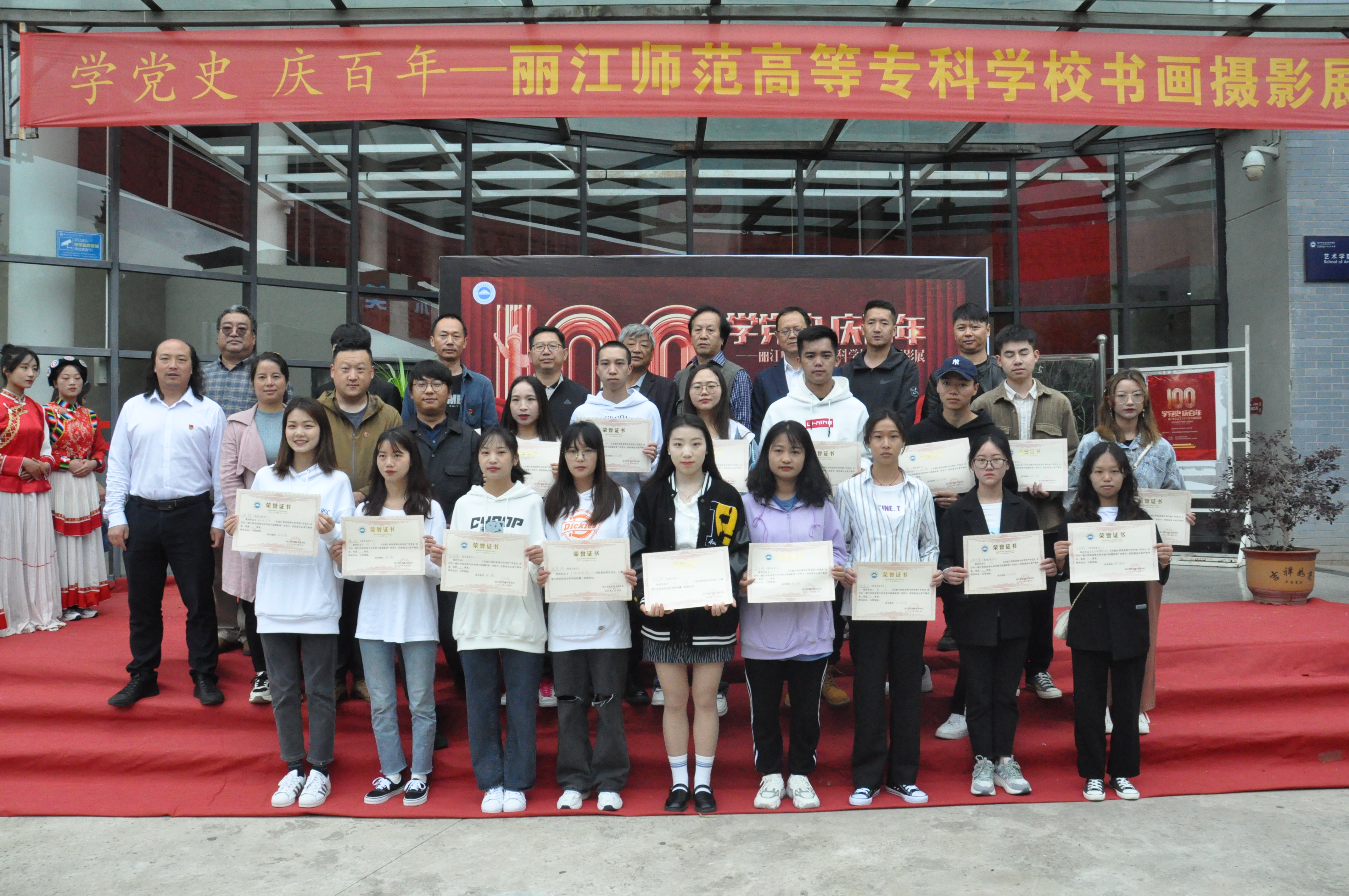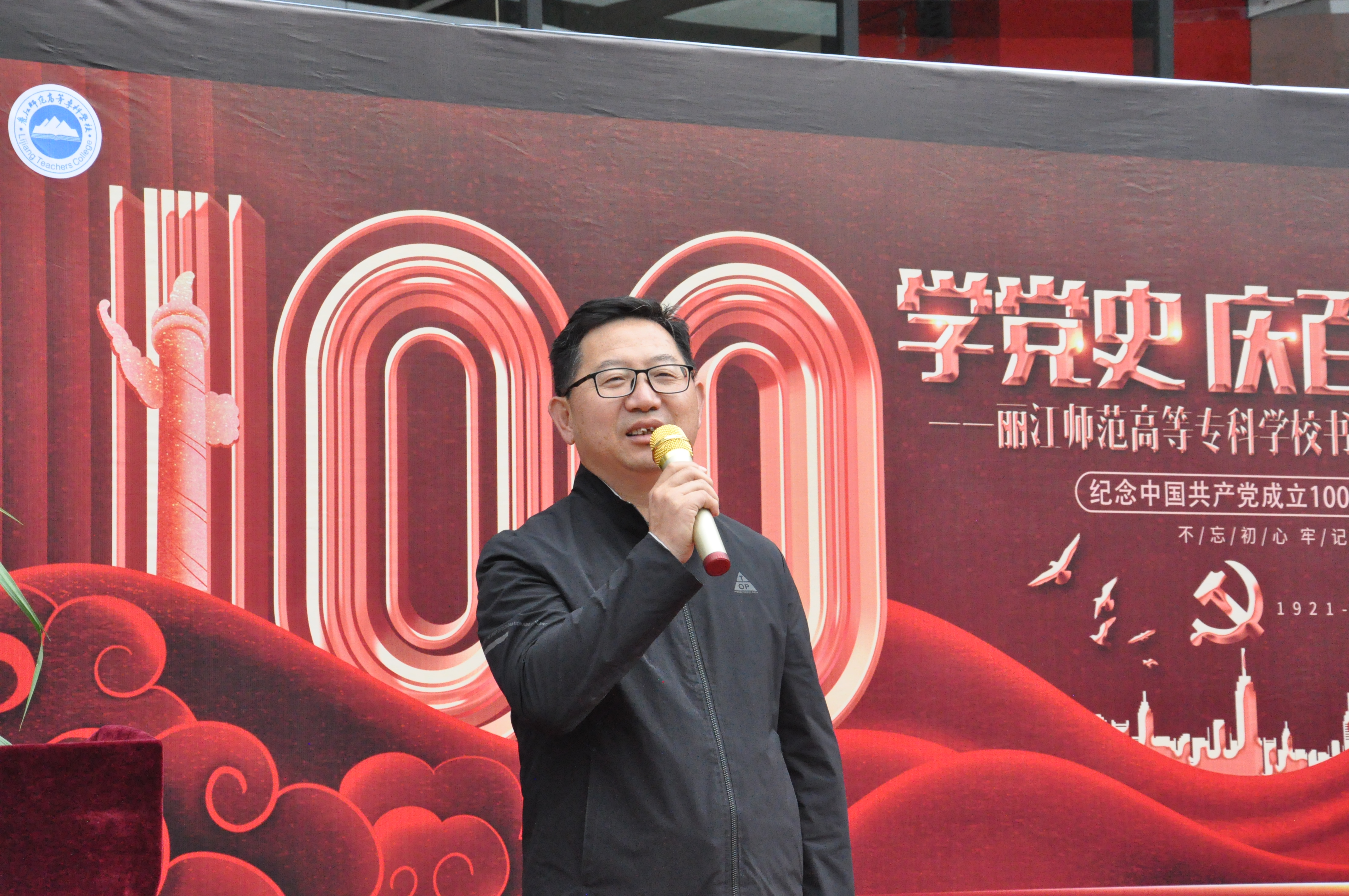 彭鸿昌宣布“学党史 庆百年——丽江师范高等专科学校书画摄影展”开幕。