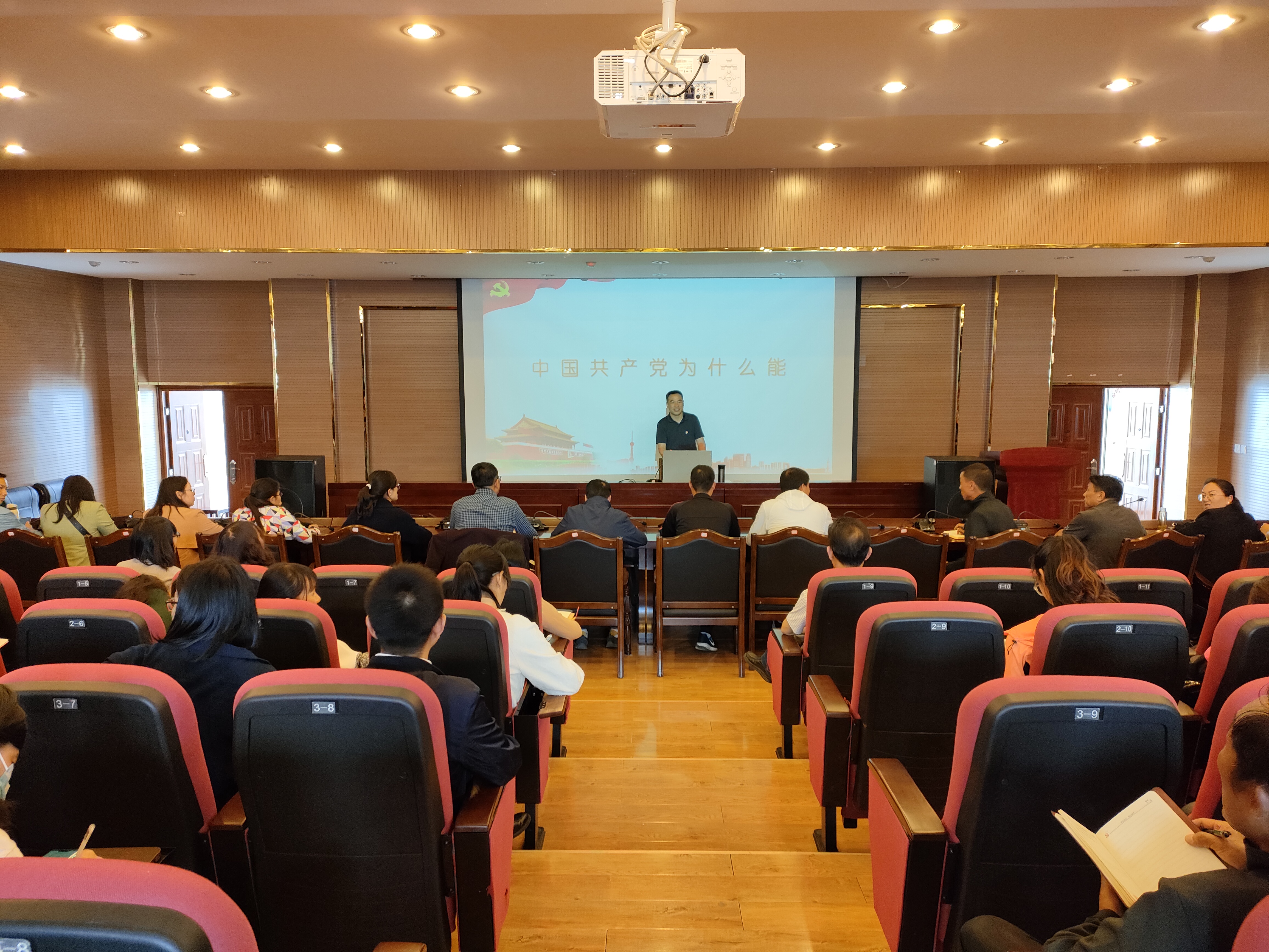 张兰胜分别从科学的理论指导,坚定地理想信念、强大的组织优势、坚实的群众基础和彻底的自我革命五个方面详细阐释了中国共产党为什么“能”。同时,结合学校的发展思路和所联系学院的工作实际,对今后如何充分发挥二级学院活力,做好强院兴校工作、如何更好地服务师生做了翔实的讲解。